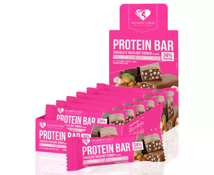 Nutritional values in 1 bar: energy value 158.8kcal / 662.3kJ, 6.7g fat (including 3.3g saturated fat), 4.1g carbohydrates (including 1.1g sugars, 1.8g polyols, 1 starches, 1g), protein 15.0g, fiber 12.1g, salt 0.3g Producer: Produced in the EU for Women's Best GmbH, Austria