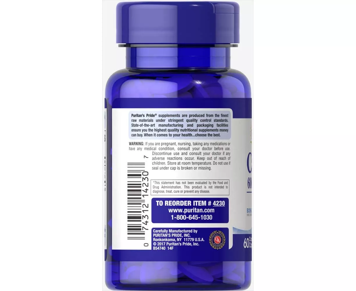 تابلت كربونات الكالسيوم بتركيز 600 مللي جرام + فيتامين دي بتركيز 125 IU لصحة العظام من بوريتانز برايد 60
