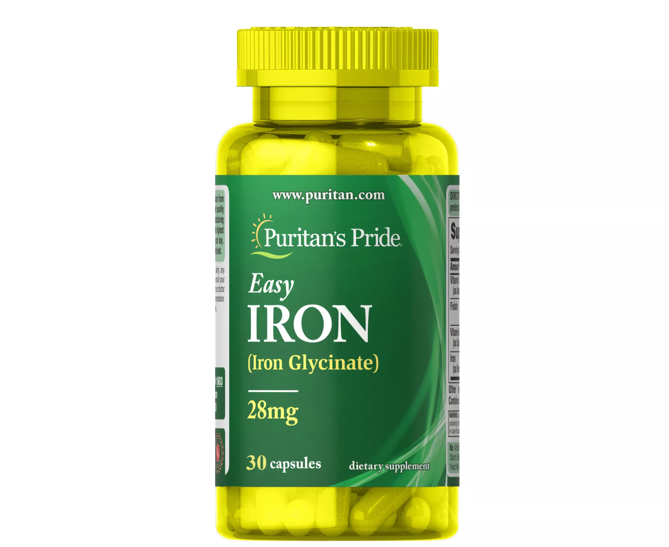 كبسولات إيزي الحديد لفعالية الطاقة بتركيز 28 ميللي جرام (جلايسينات الحديد) من بوريتانز برايد 30