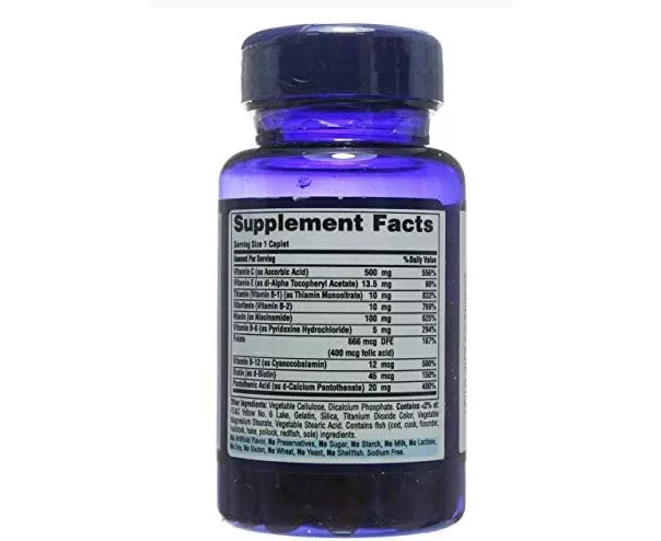 Stress Formula promotes energy metabolism and nervous system health.* Our exclusive combination contains all eight B-Complex vitamins plus Vitamins C and E. The B Complex is made up of several vitamins that work well together to support nervous system health and energy metabolism.* Vitamins C and E promote antioxidant protection and immune system health.* Adults can take one tablet daily with a meal.
