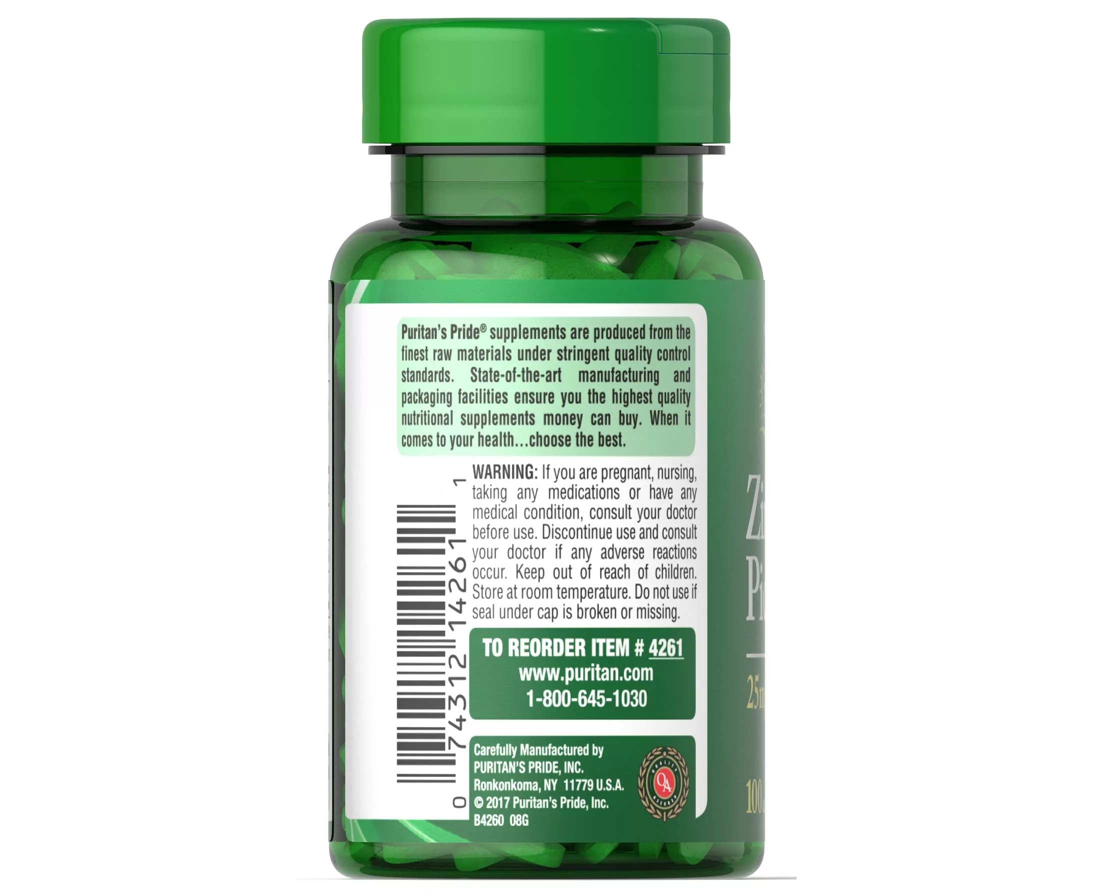 تابلت مكملات الزنك الغذائية بتركيز 25 مللي جرام من بوريتانز برايد 100
