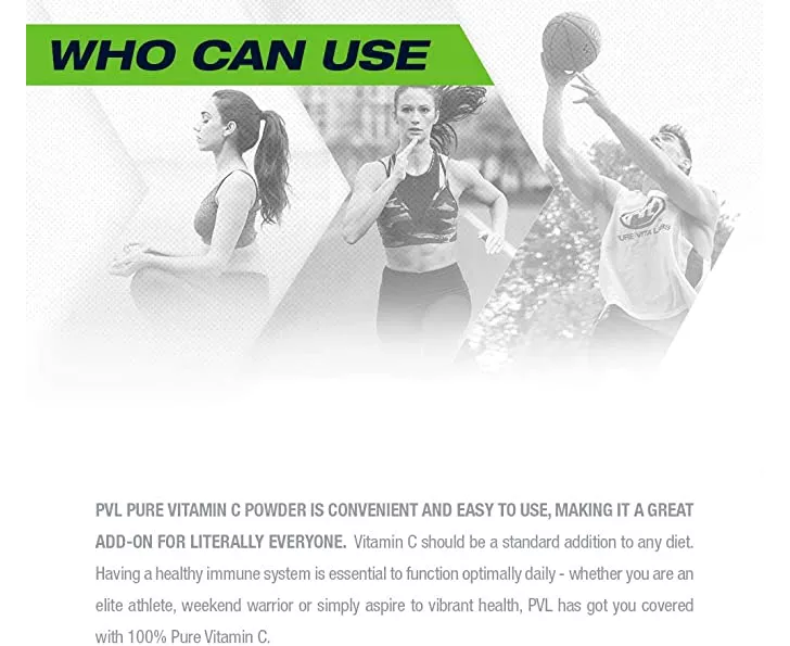 PVL 100% Vitamin C Powder is made from asorbic acid crystals - flavorless and easily added to your favorite beverage. Vitamin C overall, is known as the most researched antioxidant and is water-soluble. The antioxidant Vitamin C, provides an essential boost to white blood cells which help boost immunity Vitamin C also dramatically helps neutralize the harmful effects of free radicals, and supports the production and repair of collagen and connective tissue. The greater the stress, the more vitamin C the body requires.