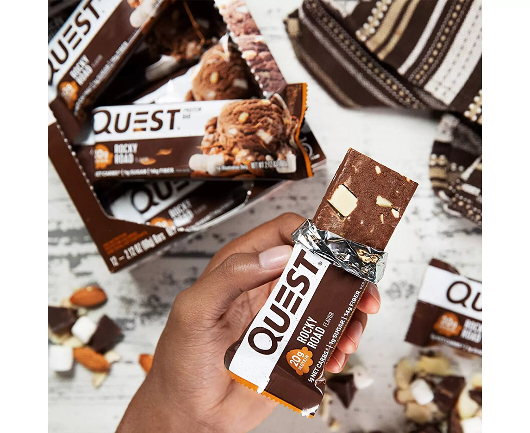 Rocky Road: Let your cravings go nuts and marshmallows and chocolate! Relive the chunky, chewy goodness of your favorite childhood ice cream flavor, one protein-packed bite at a time. Contains milk-derived ingredients and almonds.