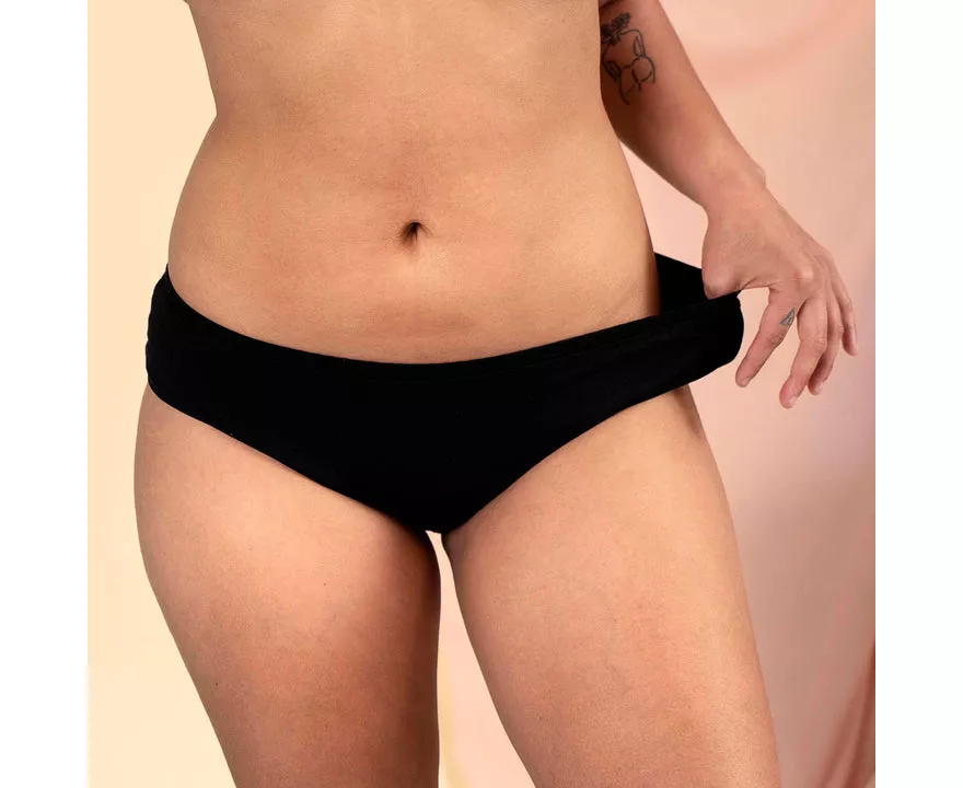 Now more leakproof and comfier than ever. Our Reusable Period Underwear looks & feels just like your everyday intimates yet absorbs as much as 3 tampons. Our stretch-fit seamlessly hugs your curves and stays in place without digging into skin (no wedgies or pinching!). Made with breathable cotton that feels silky-soft. Safe for sensitive skin. Bonus: Reusable waterproof pouch included.
