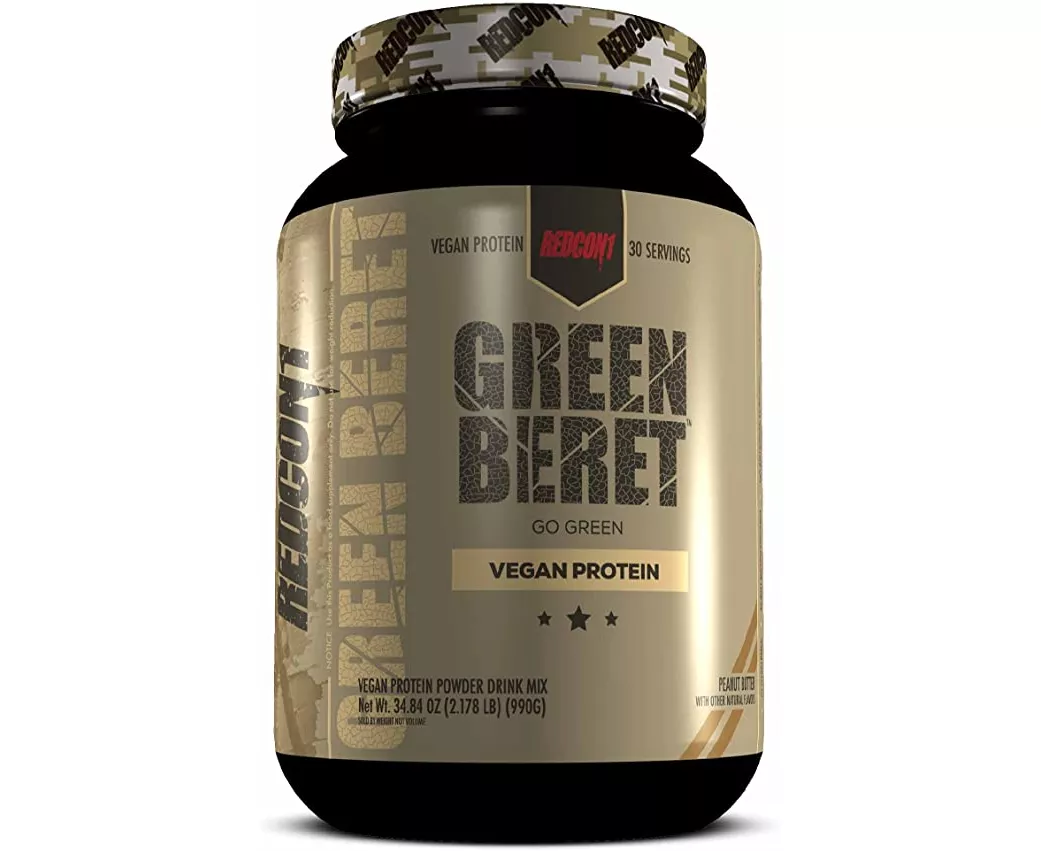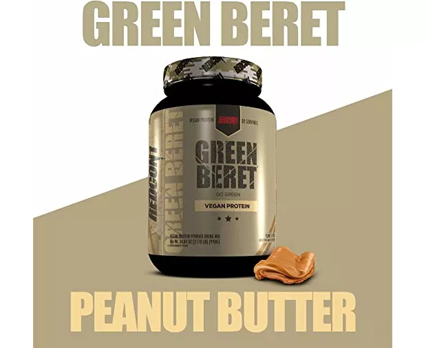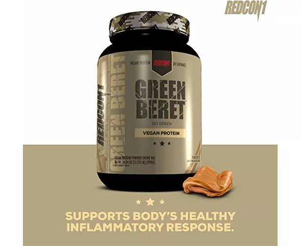 RedCon1 Green Beret Vegan Protein - Peanut Butter: A Plant-Based Protein Post workout or throughout the day, you won't find a better vegan protein than Green Beret. Build and repair muscle with a smooth delicious, and easy to digest vegan protein. Vegan protein mix Provides 20g protein per serving Getting adequate amounts of protein is crucial to supporting your muscles and keeping your body in a positive nitrogen balance Emerging research shows that consuming adequate amounts of dietary protein induces satiety and reduces the feeling of hunger when compared to carbohydrates or fats Gluten free No artificial flavor or dyes.
