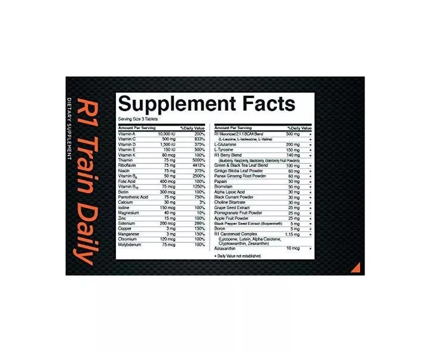 A good daily multivitamin is as foundational as protein. Our R1 Train Daily supplies all the basics €“ 22 vitamins and essential minerals €“ plus a host of compounds that go way beyond your typical grocery store multi. Things like digestive enzymes, amino acids, herbal extracts, a carotenoid complex, and phytonutrient-rich fruit concentrate. Solidify your base with R1 Train Daily.