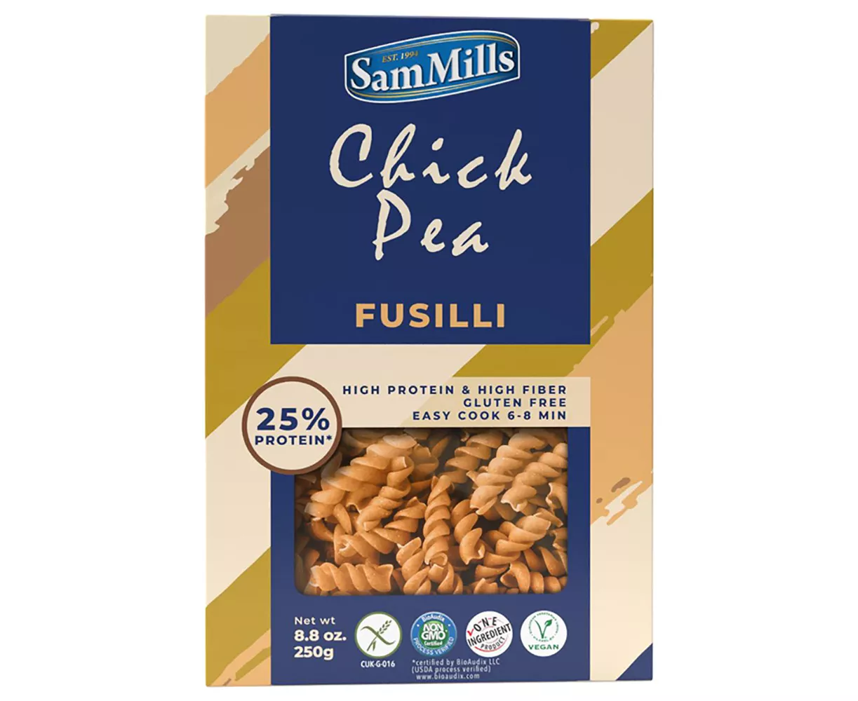 Sam Mills Chick Pea Pasta is a natural product made only from chick pea. The unique production technique means that our pasta has the true "al dente" consistency in addition to good flavor.