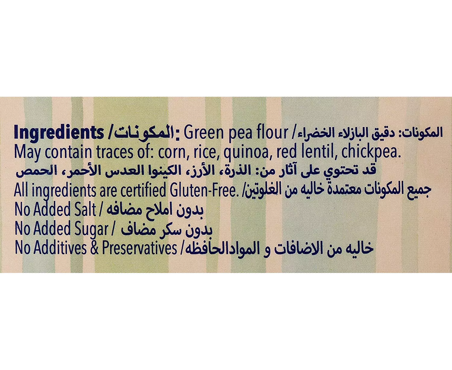 Green pea flour. May contain traces of: corn, rice, quinoa, red lentil, black bean, chick pea.