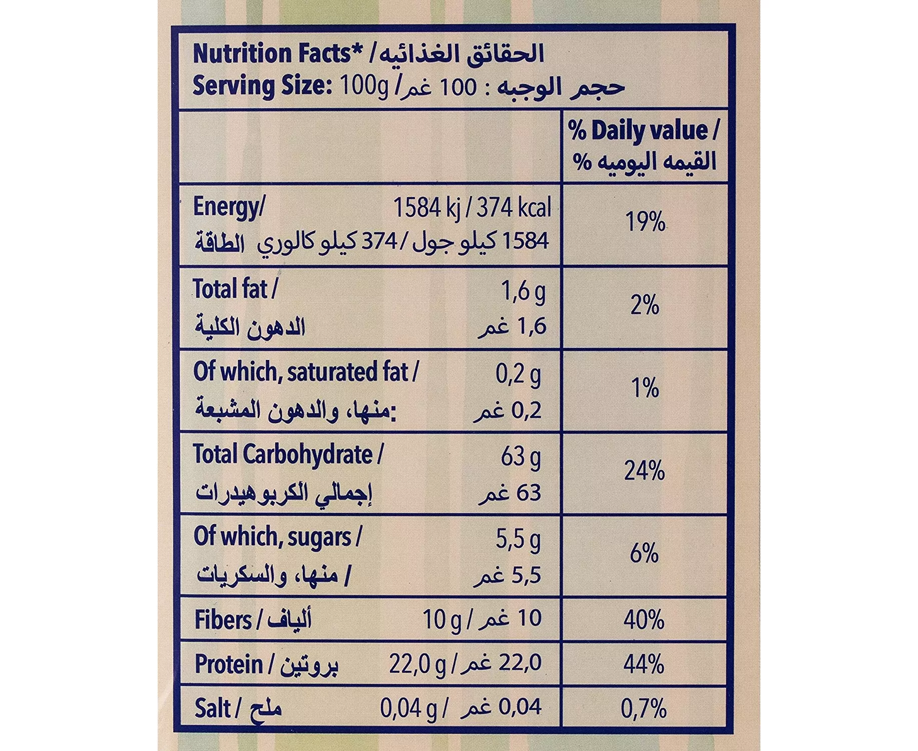 May contain traces of corn, rice, quinoa, red lentil, black bean, chickpeas.