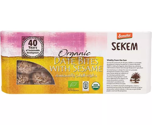 Date paste (85%), sesame (15%) from 100% biodynamic agriculture