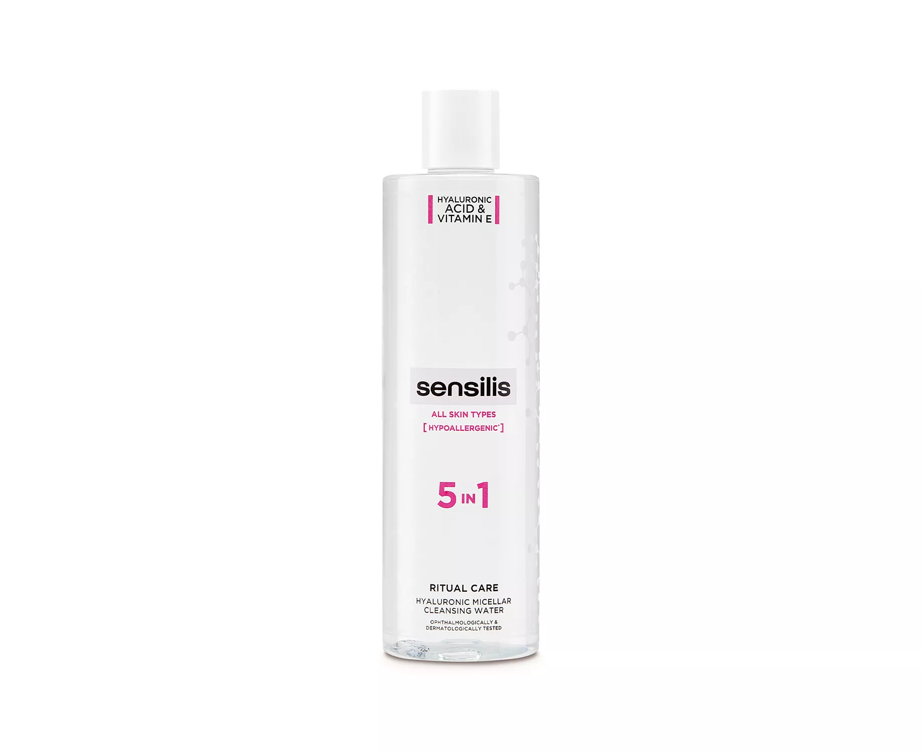 Hypoallergenic hygiene, deep clean, 0% Perfumes, 5 in 1. Cleans, removes, tones, moisturizes, calms