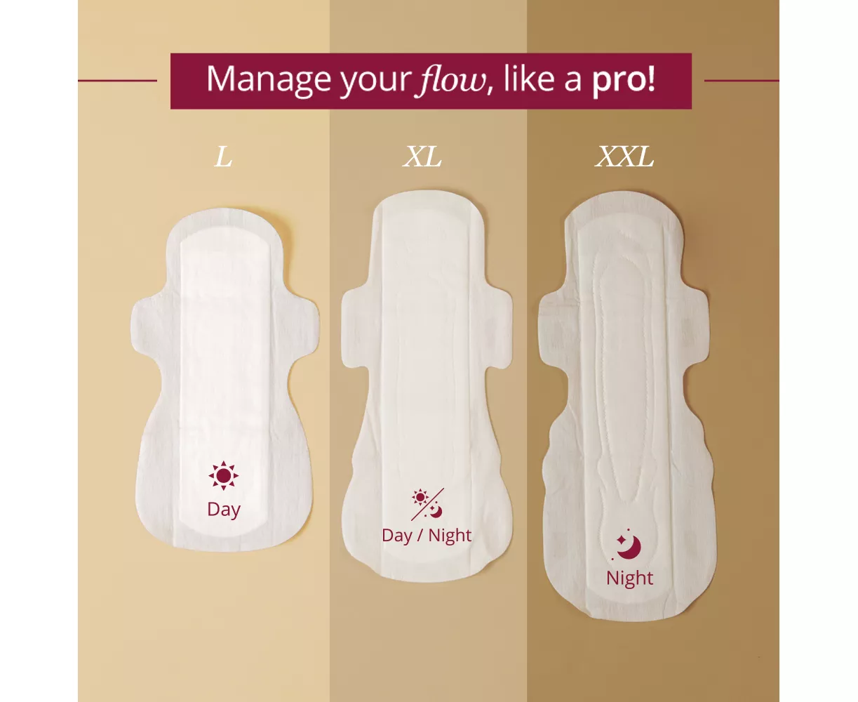 Carmesi Sensitive Sanitary Pads - Pack of 30 Pads (15 Large + 15 XL) - Certified 100% Rash-Free by Gynecologist - Natural Plant Top Sheet - No Fragrance, No Chlorine - With Disposal Bags