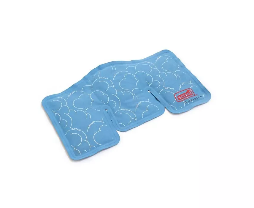 relief of rheumatics pain. As a cold pack to treat bruises, strains, sprains, headache, toothache, joint inflammation, swelling, migraine. The SISSEL® Soft Touch is ergonomically shaped to follow the contours of neck or lumbar area. To use warm Place the flat SISSEL® Soft Touch on the plate of a clean microwave. Heat at 600 W - 800 W (maximum) for 60 seconds, remove and check. If more heat is required, knead the pack to distribute the warmth evenly and heat for a further 15 seconds. Do not exceed the total maximum heating period of 90 seconds. To use cold Place the flat SISSEL Soft Touch in the freezer for 1-2 hours. (Not suitable for temperatures under -12° C).