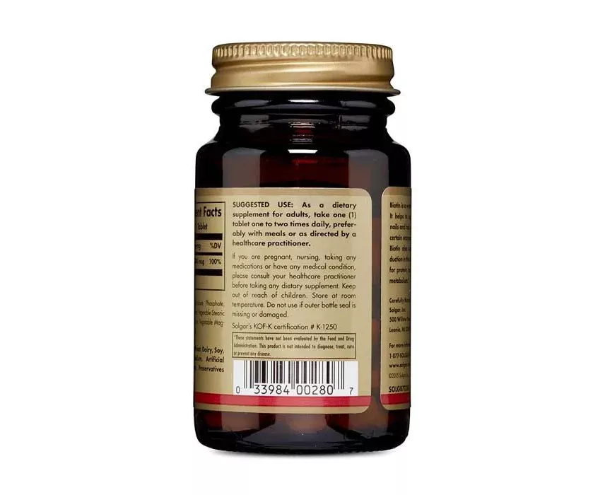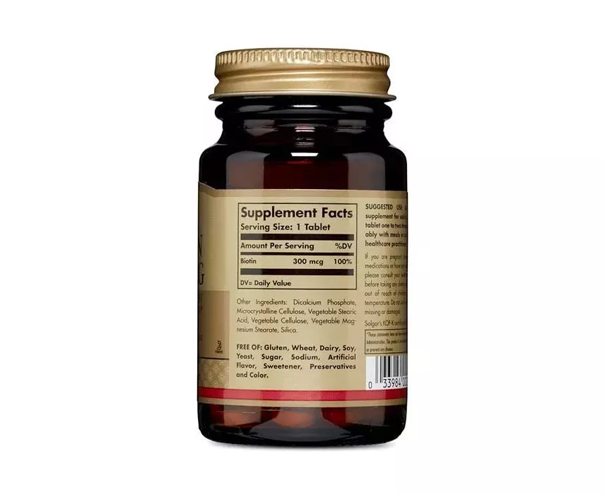 تابلت البيوتين بتركيز 300مايكروجرام من سولجار 100