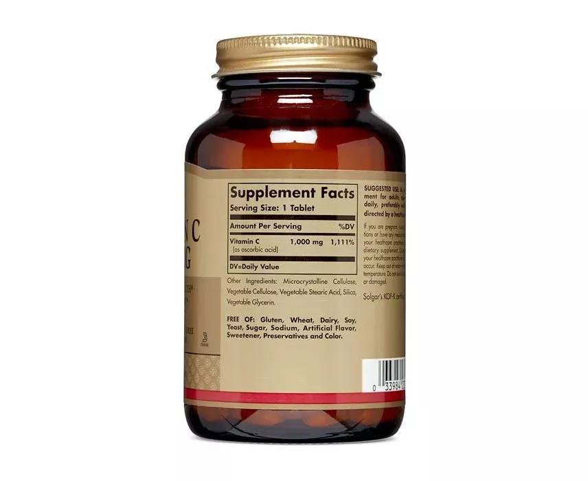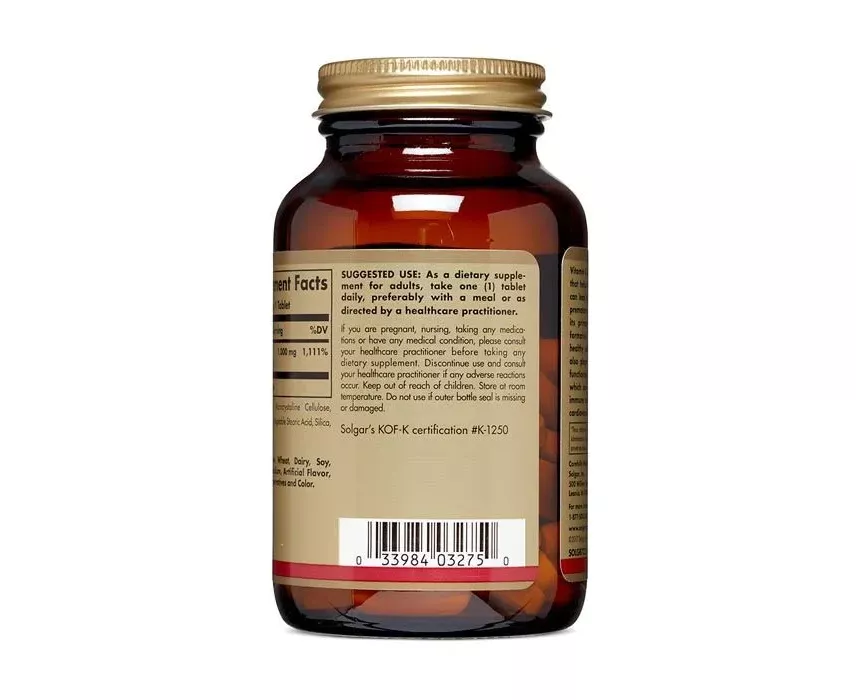 تابلت فيتامين سي بتركيز 1000 مللي جرام من سولجار 90