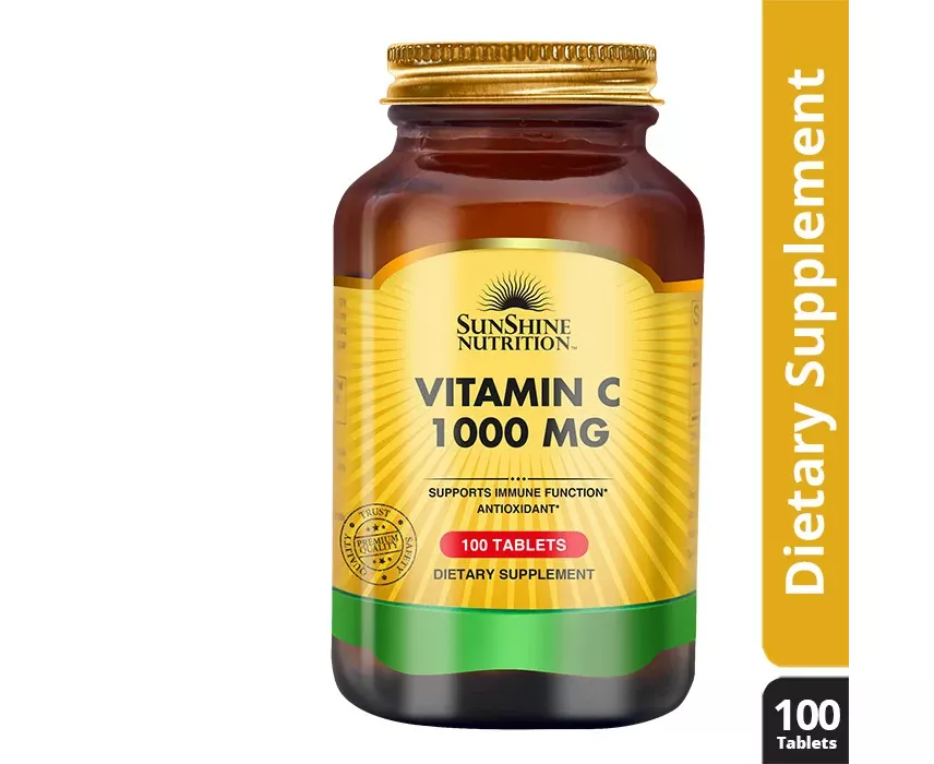 Vitamin C, also known as L-ascorbic acid, is a water-soluble vitamin that is naturally present in some foods, added to others, and available as a dietary supplement. Humans, unlike most animals, are unable to synthesize vitamin C endogenously, so it is an essential dietary component. Vitamin C is required for the biosynthesis of collagen and certain neurotransmitters. Collagen is an essential component of connective tissue- a structural component of cartilage, ligament, tendons, blood vessels, and skin. Sunshine Nutrition Vitamin C Tablets in the form of ascorbic acid functions as a powerful antioxidant which supports the scavenging of free radicals in the body. It is also an important component to maintain a healthy immune system and is used most often for preventing and treating the common cold. Rosehip in our formulation is one of the best sources of vitamin C, which will help treat infections and boost the body's immune system. Rose hips are the fruit of rose bushes and, when fresh, can have more than 60 times as much vitamin C as one orange. The rose hips are valued for their medicinal use in folk medicine.
