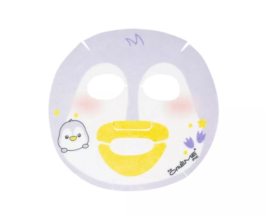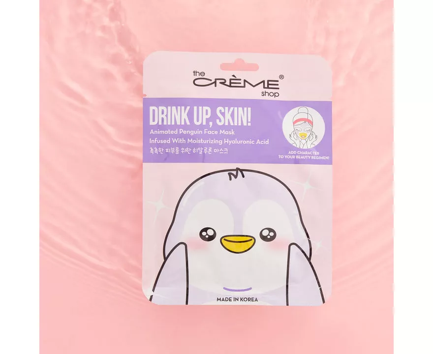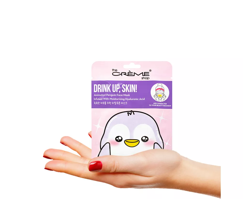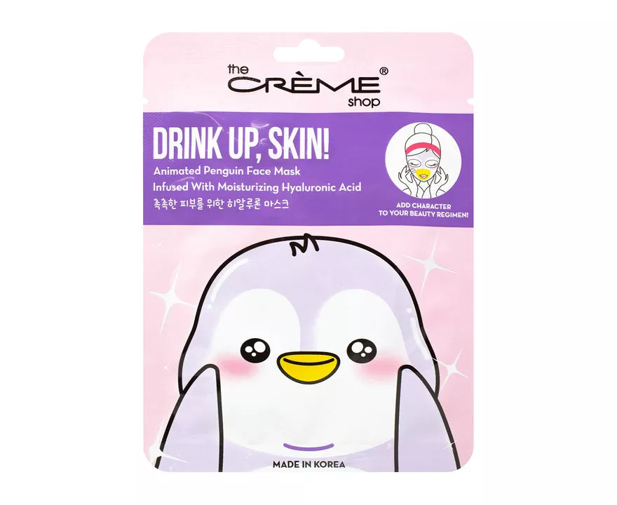 Drink Up, Skin! Animated Penguin Face Mask Infused with Moisturizing Hyaluronic Acid Animate your skin with The Crème Shop's animal masks! Keep your skin smooth and dewy like a penguin’s perfectly polished coat. Infused with Hyaluronic Acid, this ultra-moisturizing face mask quenches your skin’s thirst for an effortless, radiant glow.