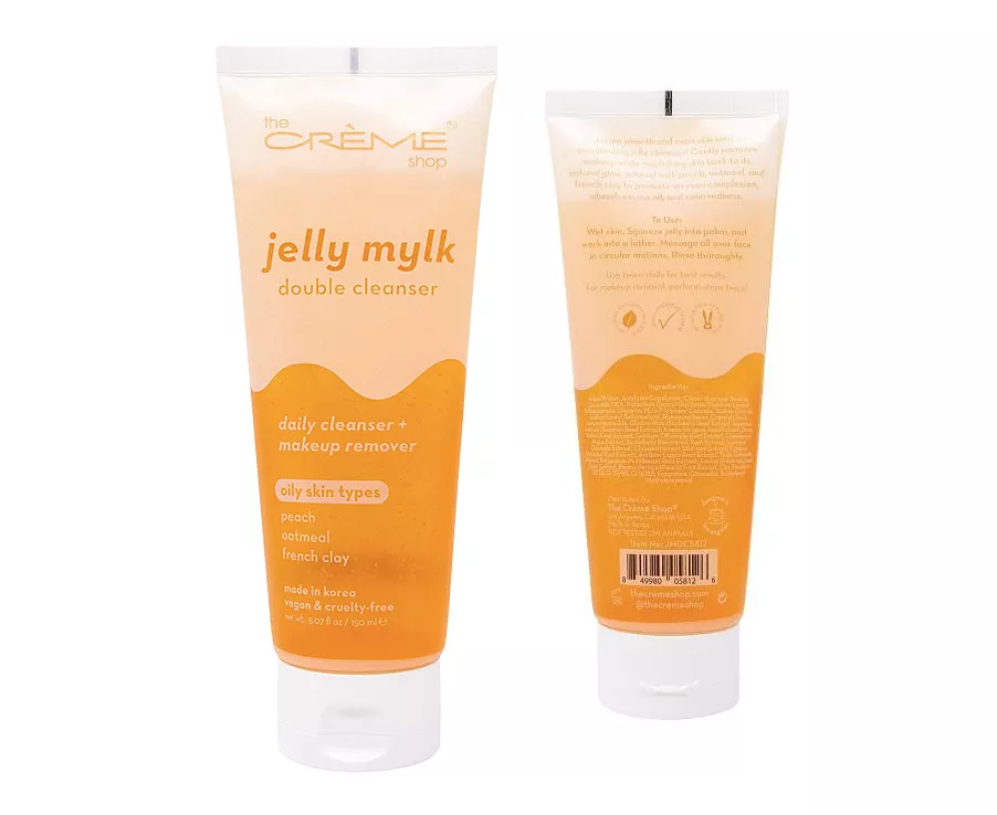 Want to double cleanse to deeply remove your makeup but don’t like the dry feel after the second wash? Not a problem, this is the face wash for you! Introducing our Cruelty-Free, Vegan, Non-drying daily Face Wash Cleanser & Makeup Remover: The Crème Shop Jelly Mylk Double Cleanser. A face wash that lathers from a jelly to milky consistency. Enhance your glow with our conditioning face cleanser that gently removes makeup and nourishes to promote a youthful, brightened appearance. Infused with Peach, Oatmeal, and French Clay to whiten skin, maintain hydration and help prevent acne. Peach contains Vitamin C to help defend from free radicals and combat UV-induced damage, supports healthy collagen production, whitens skin and helps improve texture, while Oatmeal helps to reduce inflammation while stimulating collagen production. What ties everything together to create a powerful synergy is French Clay, which helps draw out impurities from pores and provides gentle exfoliation. For best result: use twice daily. ABOUT THE BRAND: The Crème Shop has been in the business for decades with its humble beginning rooted in South Korea over 45 years ago. All our skin care and majority of our makeup and cosmetics line are proudly made in Korea although the company is currently head quartered in Los Angeles, California.