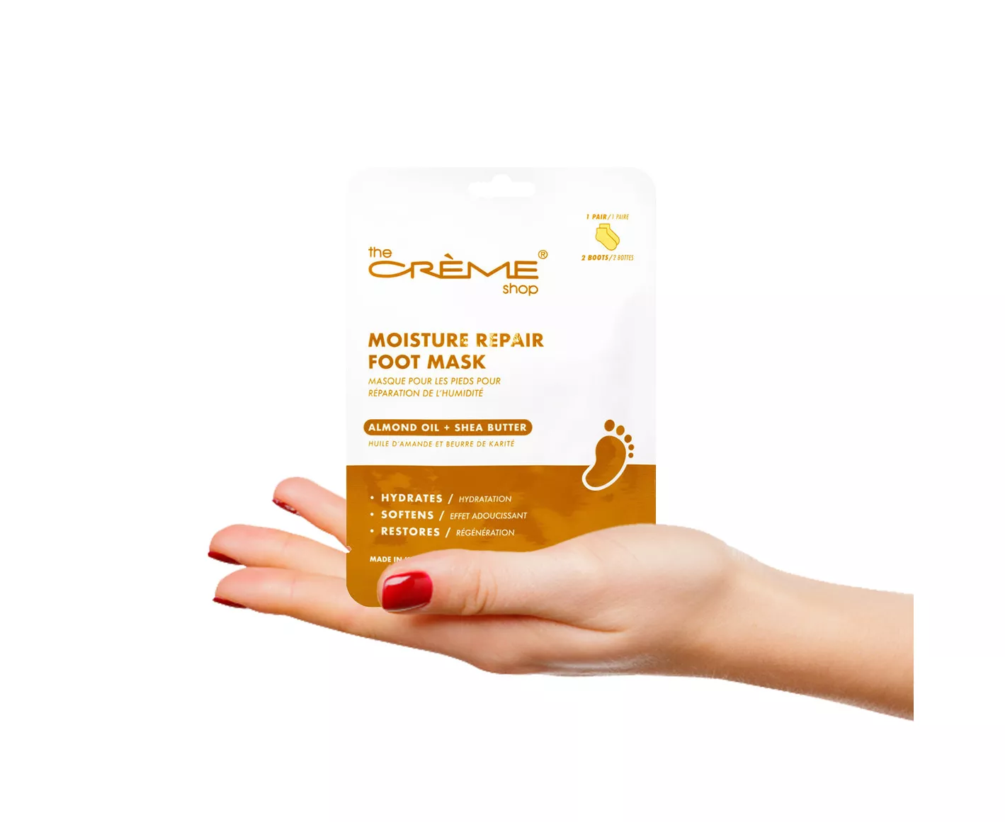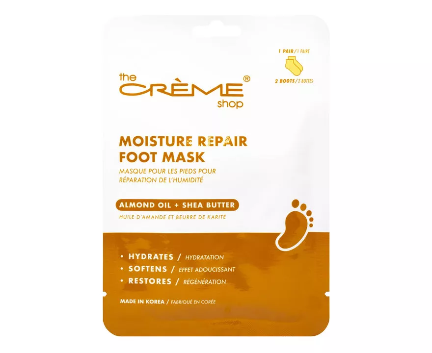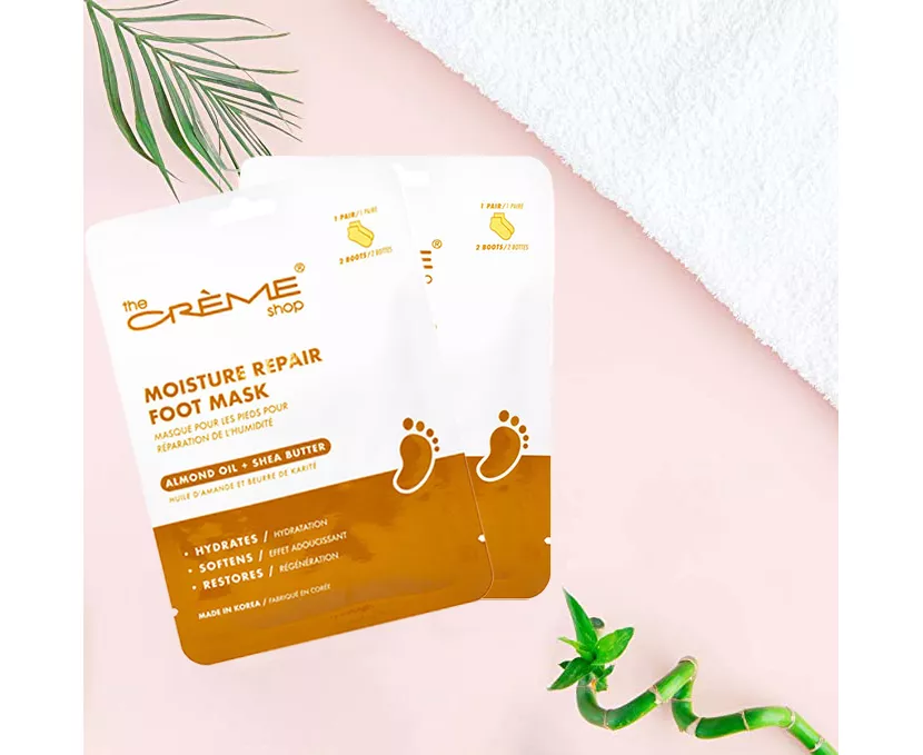 • Feet Relief: Indulge your feet in the latest addition to the Crème Shop's skincare collection, the easy-to-use and non-drip, feet Repairing Foot Masks with Almond Oil & Shea Butter.