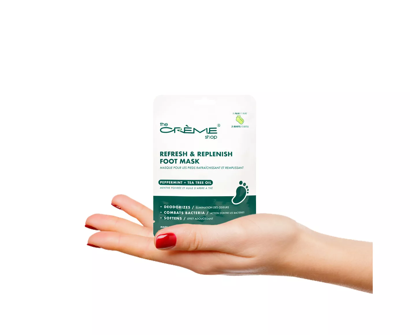 • Feet Relief: Indulge your feet in the latest addition to the Crème Shop's skincare collection, the easy-to-use and non-drip, feet Repairing Foot Masks with Almond Oil & Shea Butter.