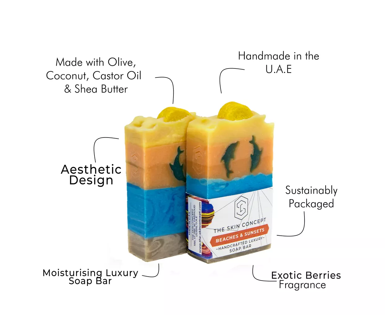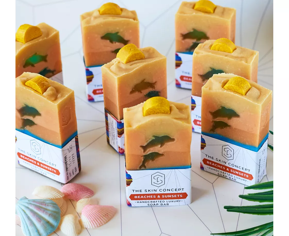 Made with nourishing and skin-loving oils, Beaches and Sunsets is one of the many colorful artisan soaps in our collection.