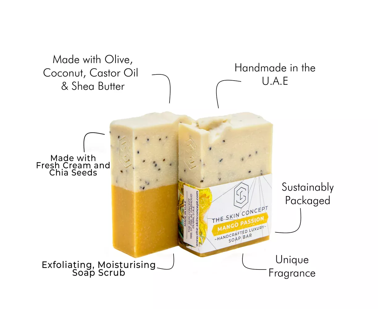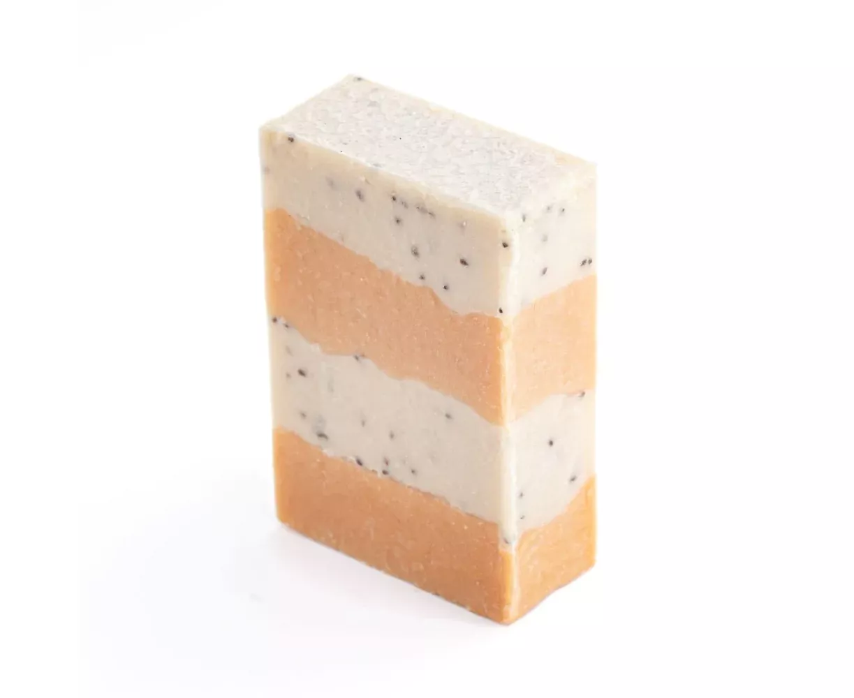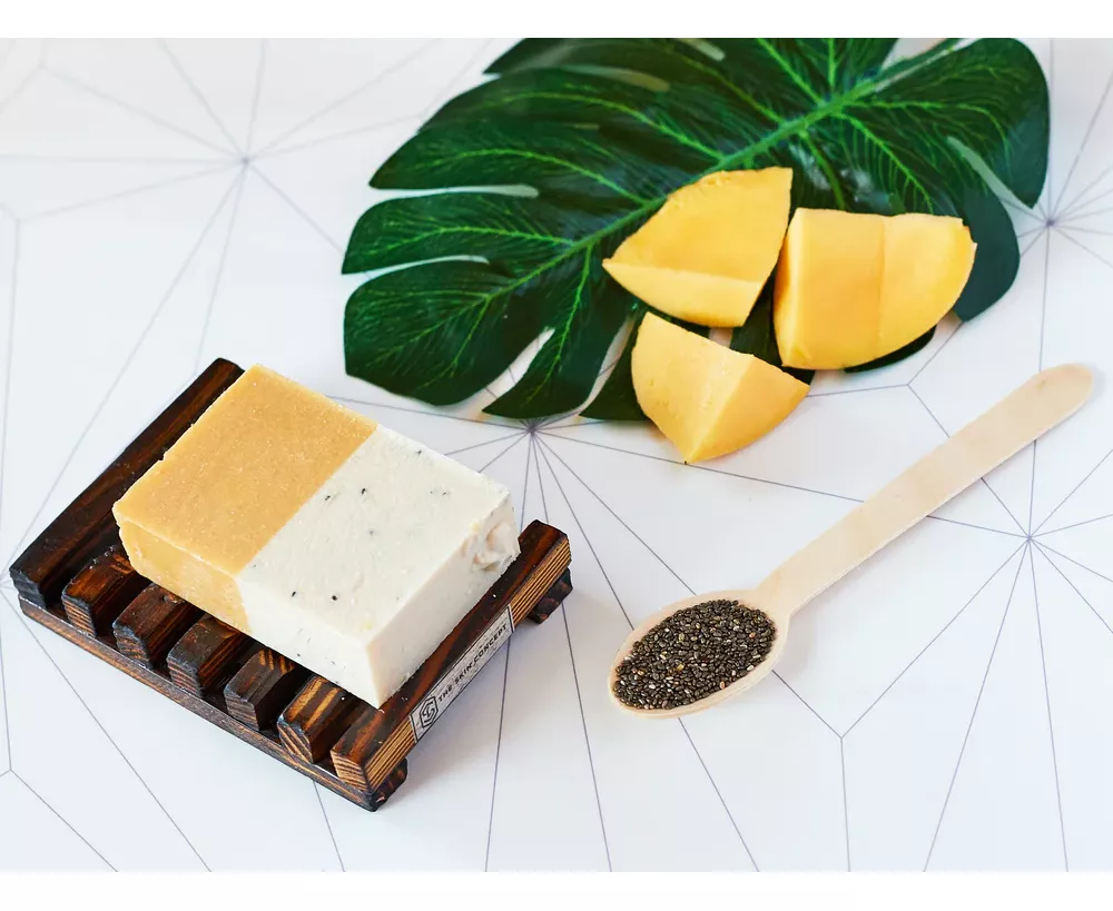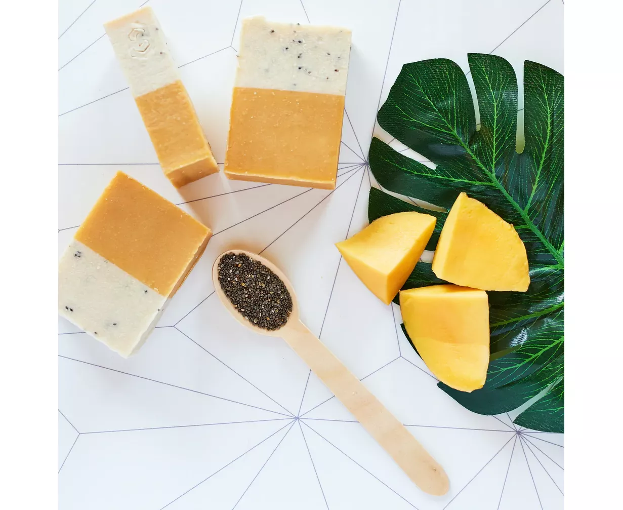 Coconut Oil, Olive Oil, Sustainably Extracted Palm Oil, Sunflower Oil, Castor Oil, Shea Butter, Cosmetic Grade Mica, Parfum, Chia Seeds.