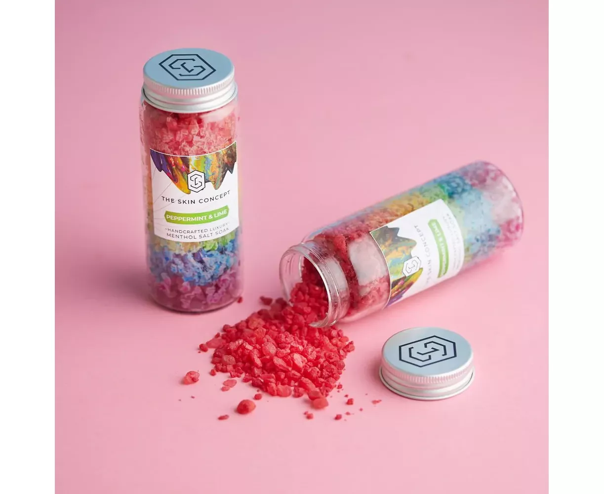 Himalayan Pink Salt, Epsom Salt, Kaolin Clay, Menthol, Parfum.