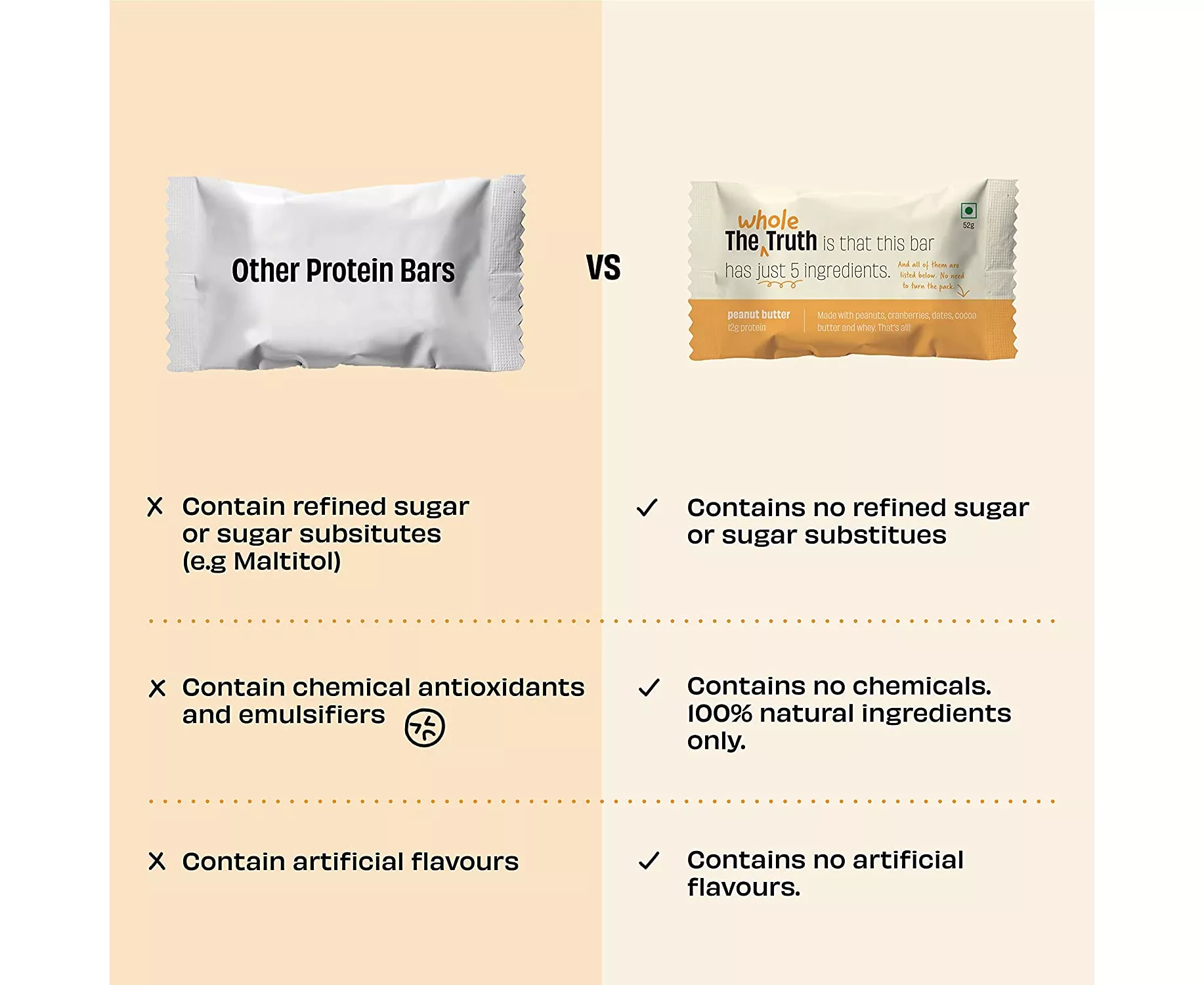 • No added sugar, no artificial sweeteners, no preservatives, no gluten or soy, no added flavor or color, no hidden mark