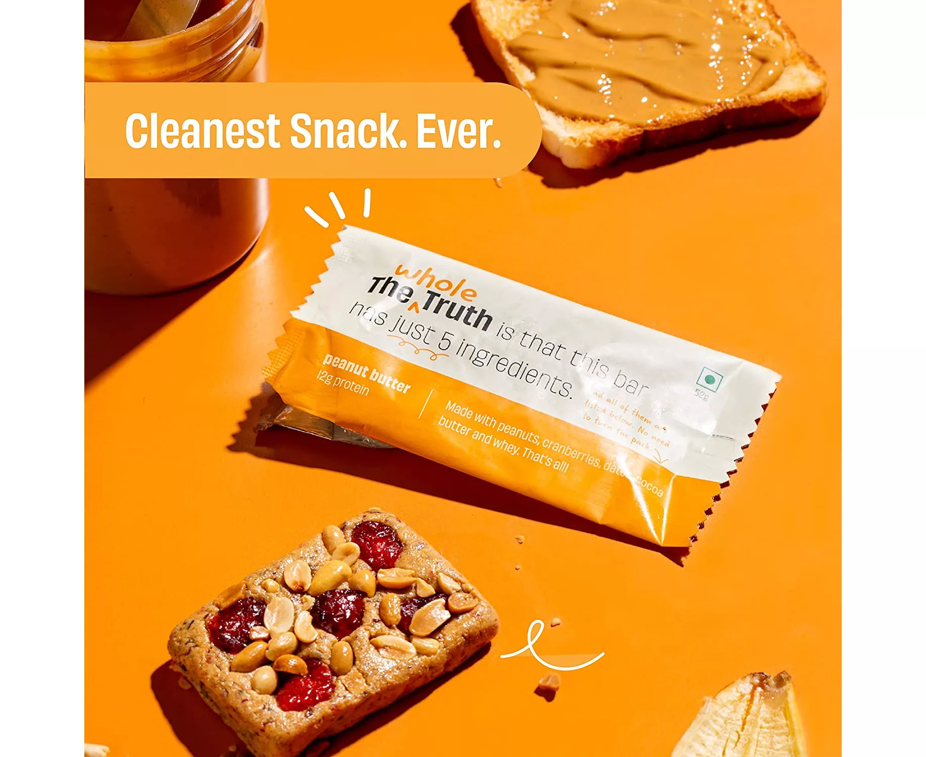 ذا هول تروث بار البروتينs زبدة الفول السوداني علبة of 6 x 52جرام each مكونات طبيعية