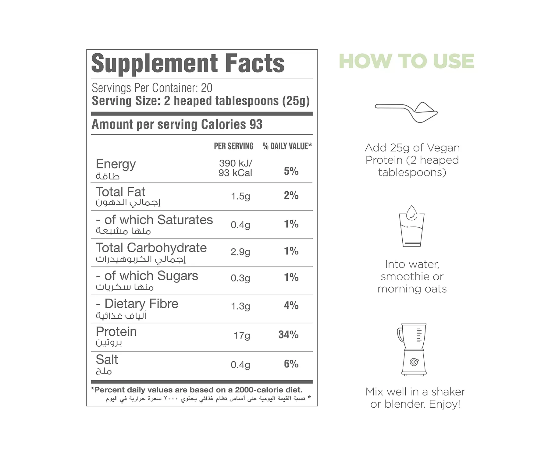 All natural, low carb, with high levels of fibre our vegan protein helps you with your daily protein needs whilst adding creaminess to your smoothies. Easily digested & absorbed by the body for muscle toning & recovery.
