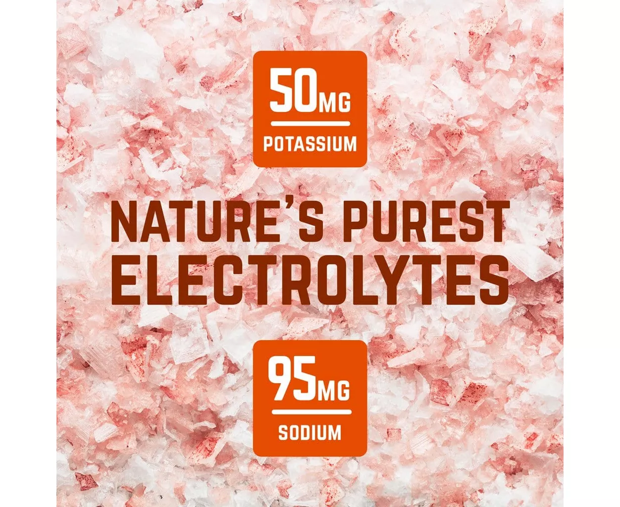 - Beet sugar, corn starch, water, citrus fruit concentrate (9%)(orange & lemon), coconut water powder, dried ginger, pink Himalayan salt.