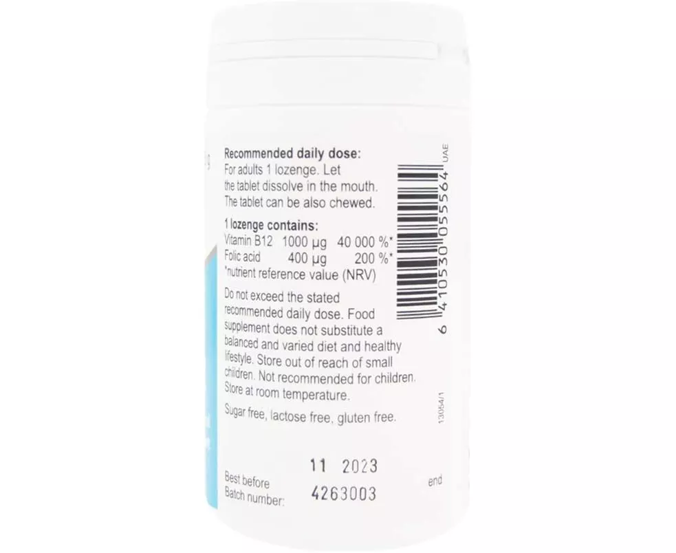 B12 is also well absorbed on the mucous membranes of the mouth if a supplement contains a high amount of vitamin. Let vita b12 + folic acid lozenge slowly dissolve in the mouth in order to ensure the maximal absorption of vitamin b12. Folic acid is absorbed in the gut.