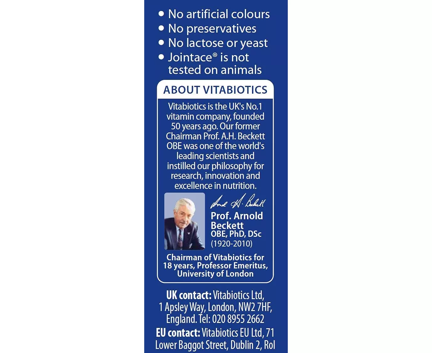 Jointace Original has been developed by Vitabiotics nutritional experts and provides unique combinations of trace minerals, vitamins and nutrients, ideal for those with an active life, in sport or in later life.Along with trace minerals for extra nutritional support, Jointace Original provides Glucosamine present in the preferred potassium form, and a high quality LMW (low molecular weight) form of Chondroitin, together with Ginger Root extract, a well-known botanical ingredient.