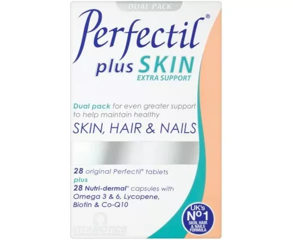 The Perfectil Plus tablet works by delivering nourishment via the bloodstream , for the dermal layer of the skin, hair follicles and nail beds. It provides nutrients that may contribute to the maintenance of normal skin, hair and nails It also includes plant extracts such as standardised Grape Seed Extract.Each tablet contains 22 nutrients to help maintain skin, hair and nails. For skin to look its very best, Perfectil provides natural plant extracts. Vitamins and minerals essential to healthy blood circulation and strong tissue formation.