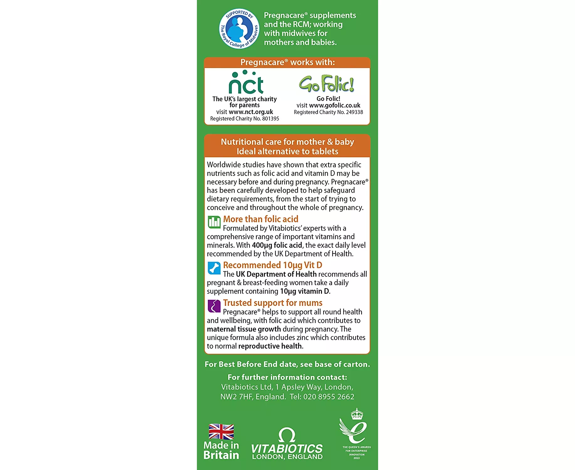 • Includes 400µg folic acid and 10µg vitamin D, the exact levels as advised by the UK Department of Health during pregnancy