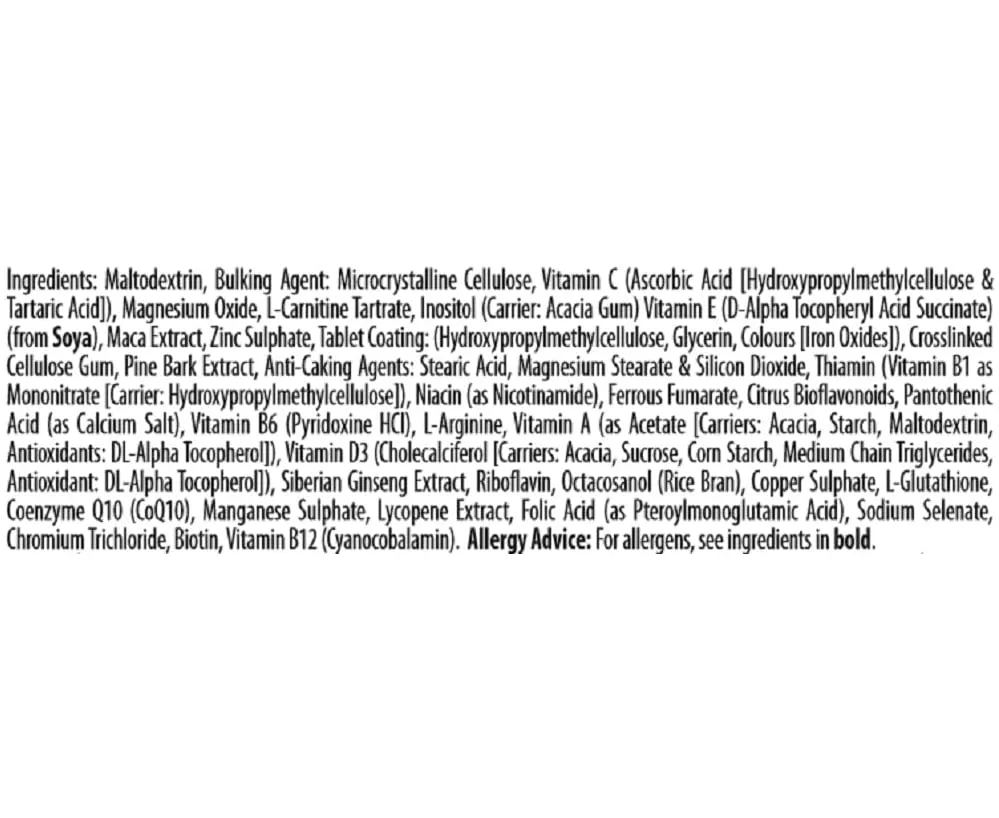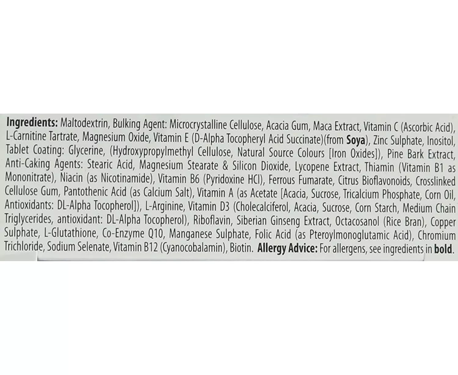 It helps in support for fertility and men’s sexual health. It provides ginseng, selenium, Peruvian maca, selenium and Co-Q10.