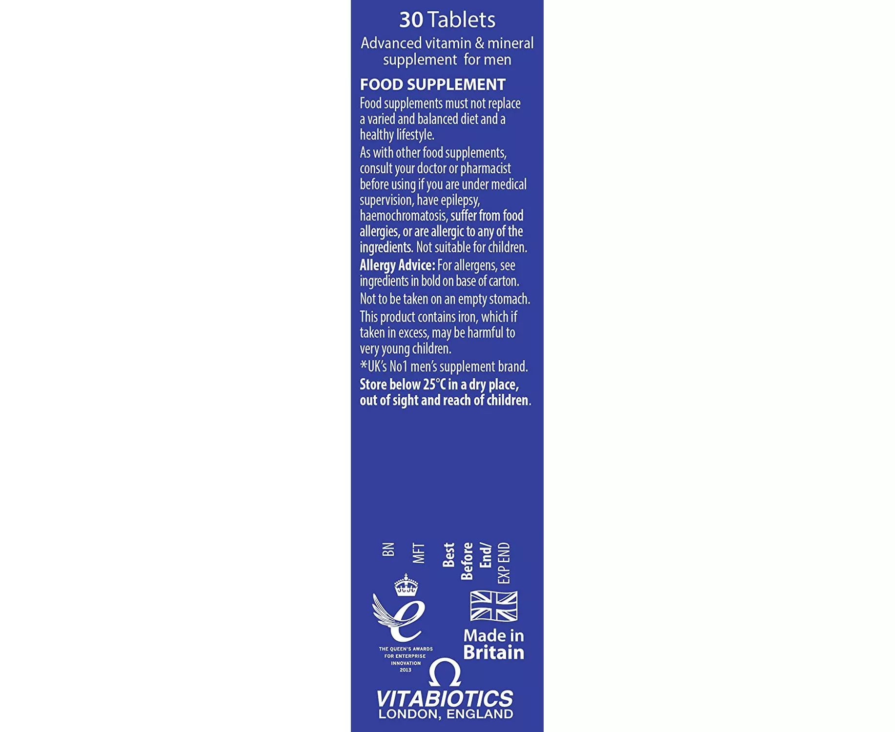Vitabiotics tablets are essential for the wellbeing and health of men. It contains Vitamin A, C, and D, which promotes normal immune functions. Vitamin B6 and Vitamin B12 boost the production of red blood cells and reduce fatigue and tiredness.
