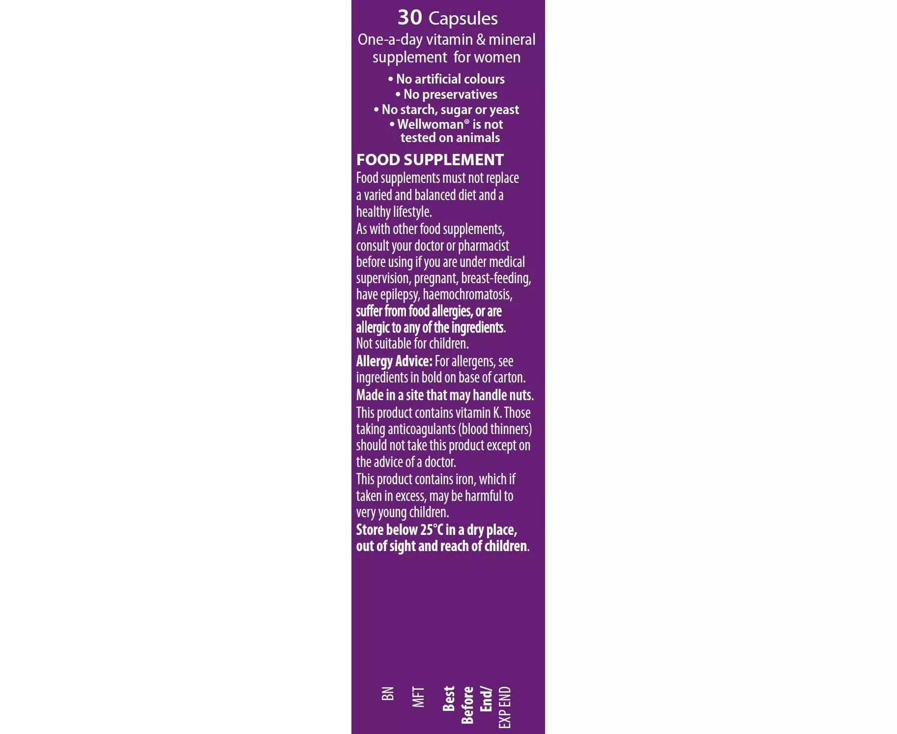 Swallow with water or a cold drink. Not to be chewed. Do not exceed the recommended intake. To be taken on a full stomach. This comprehensive formula replaces other Wellwoman multivitamins. There is no need to take an additional multivitamin.