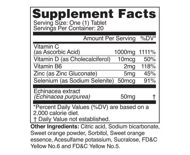 Vitalshield is a combination of Vitamin C, Vitamin D, Vitamin B6, Echinacea, Zinc, and Selenium designed specifically to support healthy immunity.