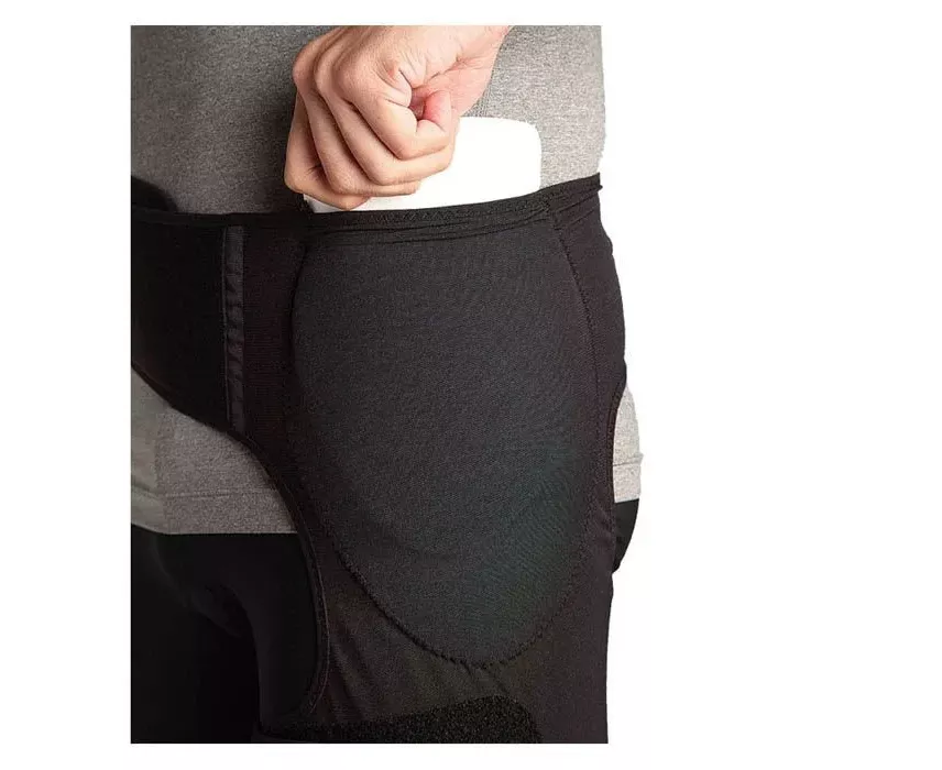 • Side pocket with cushioning pad helps to support and protect hip joint