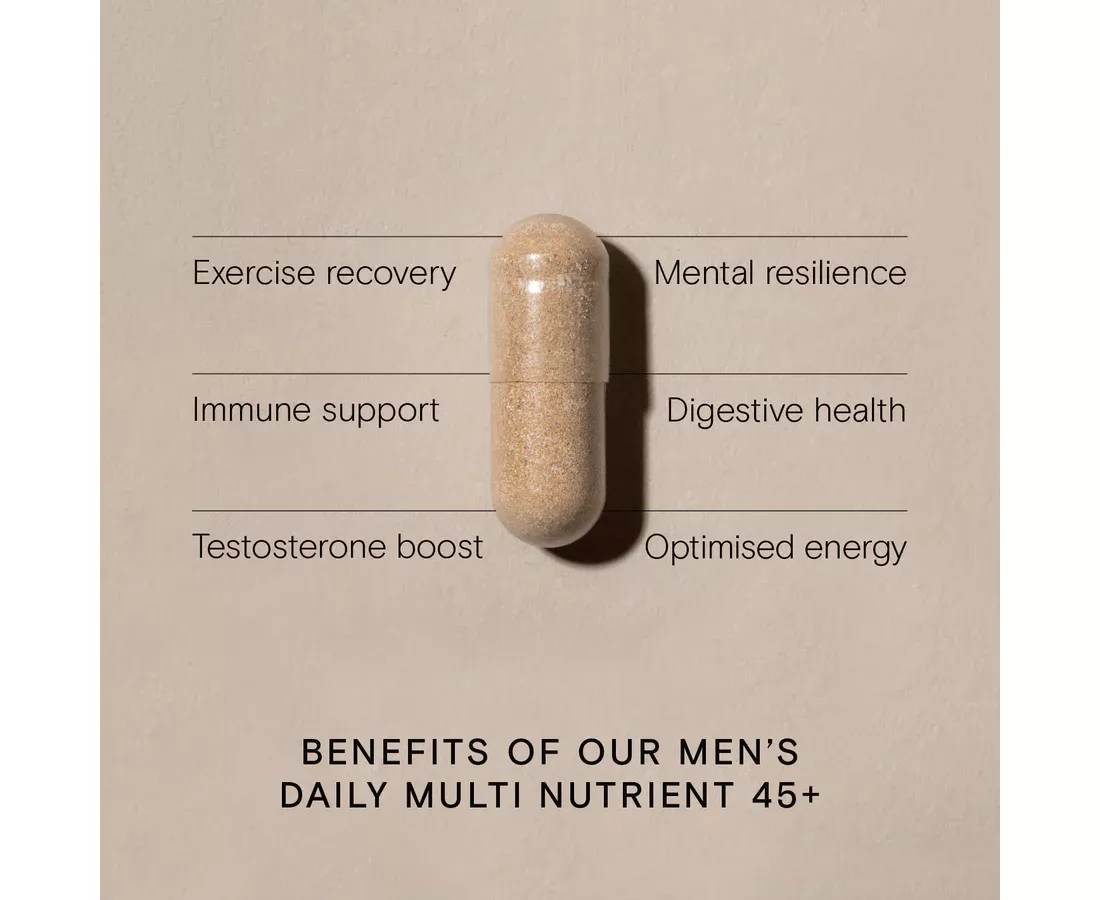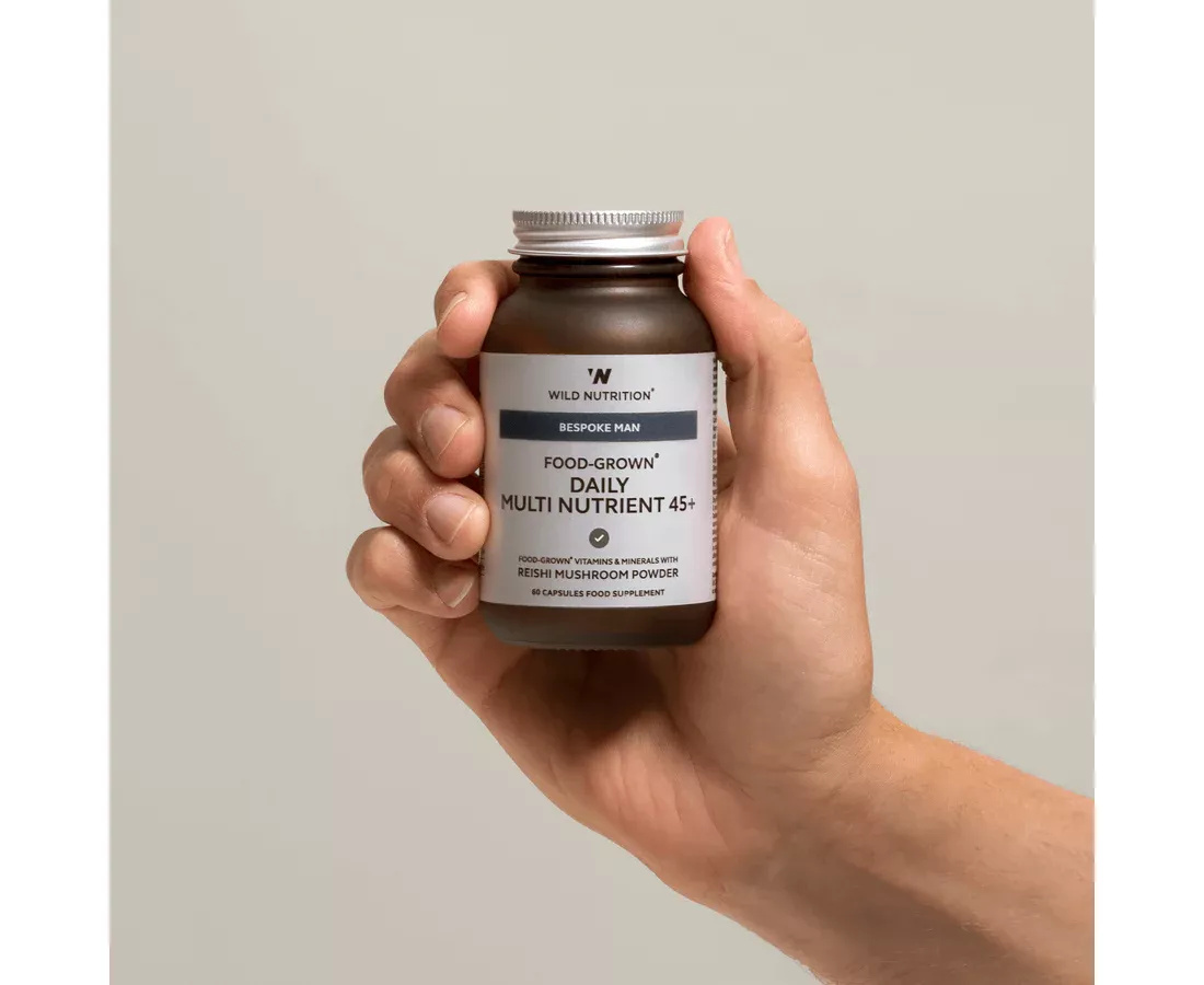 Wild Nutritions Food-Grown Daily Multi Nutrient for men is a comprehensive blend of highly bio-available Food-Grown nutrients, amino acids, and CoEnzyme Q10. This bespoke formula has been expertly developed for men who want to maintain optimum vitality and support important areas of health such as immune health, energy, and sports recovery. Key ingredients include; Vitamins B2, B3, B12, and Vitamin C for the reduction of tiredness and fatigue, normal function of the nervous and immune system pre- and post-exercise, healthy psychological function, and the maintenance of normal skin. Vitamin E, Zinc, and Manganese are included for their contributory role in the protection against oxidative stress. Oxidative stress is a result of free radical damage produced from lifestyle factors including stress, environmental pollutants, alcohol, cigarette smoke, poor diet, and high levels of exercise.