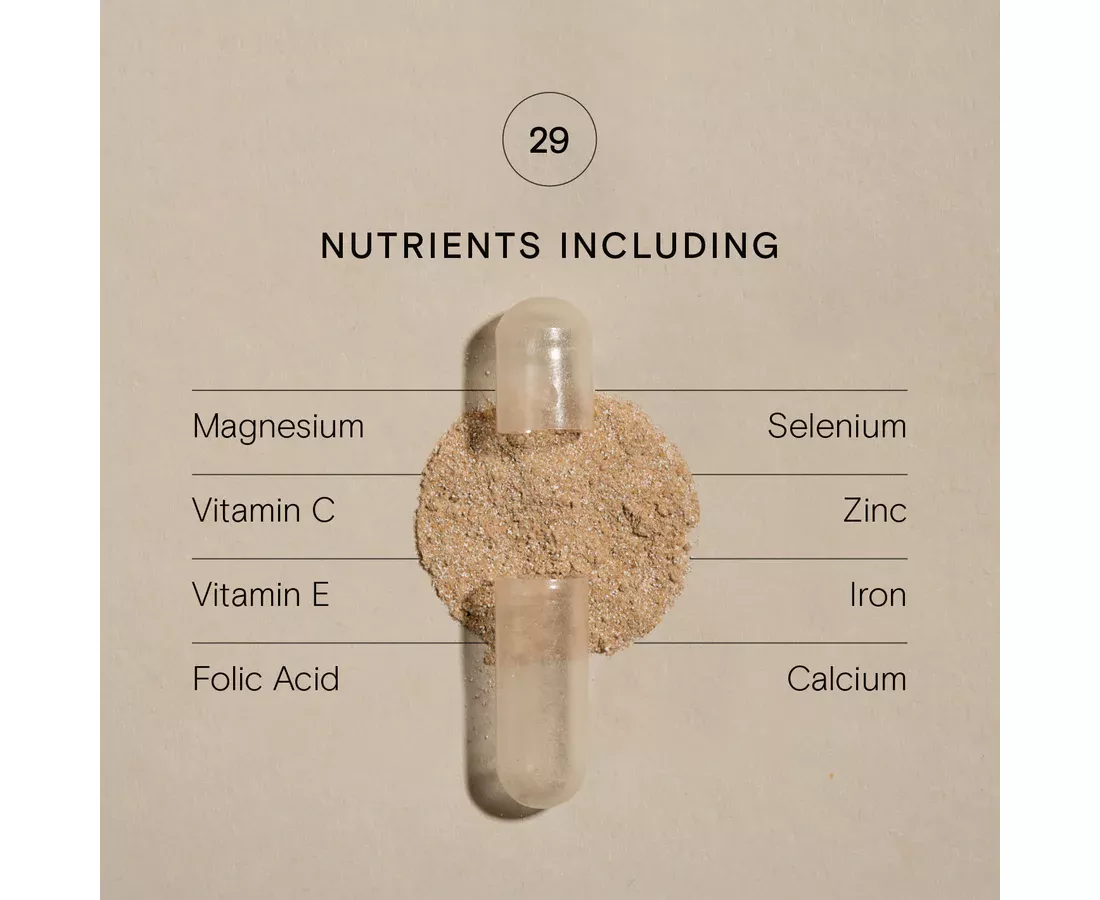 Vitamin C incorporated in citrus pulp; Beta-Carotene incorporated in Carrot concentrate; Mineral enhanced Yeast providing Thiamin, Riboflavin, Vitamin B6, Vitamin B12, Vitamin E, Biotin, Inositol, Vitamin D3, Niacin, Pantothenic Acid, GTF Chromium, Pro-Natured CoEnzyme Q10, L-Methionine; Lactobacillus bulgaricus providing Magnesium, Copper, Manganese, Selenium, Zinc, Molybdenum, Iron, Iodine and Calcium; Folic Acid (as naturally occurring Folate) and Vitamin K incorporated in Alfalfa concentrate; Alpha Lipoic Acid, Cordyceps Sinensis powder, and Reishi mushroom powder. Vegetable Cellulose (capsule shell).