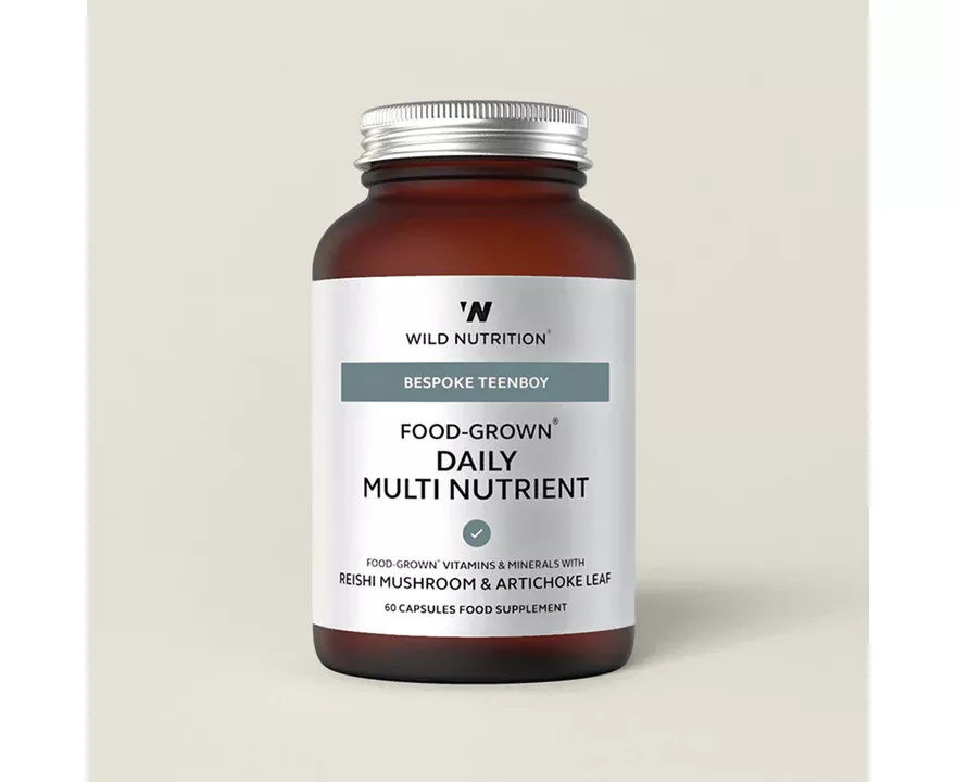 Wild Nutrition Food-Grown Daily Multi Nutrient Teenboy is a unique complex of Food-Grown® vitamins, minerals and botanicals formulated for teenage boys.  Providing zinc for healthy testosterone, vitamin B12 for immunity and energy and Calcium and Vitamin D for healthy bones and teeth, Food-Grown Daily Multi Nutrient is an expertly designed with essential nutrients for psychological and cognitive function, hormonal activity and the reduction of tiredness and fatigue in teenage boys.  Food-Grown Daily Multi Nutrient Teenboy benefits from added reishi mushroom and organic artichoke for natural reinforcement during a time of rapid development.