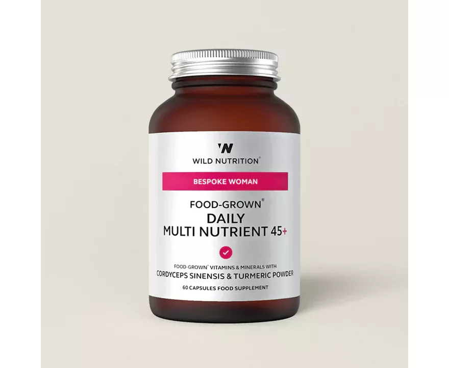 Wild NutritionWomen's Food-Grown® Daily Multi Nutrient 45+ provides richly nutritious sources of Magnesium, Vitamin K, Manganese, Vitamin D and Vitamin C to contribute to the maintenance of normal bone health; Zinc, Biotin and Copper to support skin and hair. In addition it also contains Vitamin B5, B3 and Folic Acid (as naturally occurring full spectrum folate) for the reduction of tiredness and fatigue; Iodine and Selenium to support normal thyroid function; Vitamin B6 for the regulation of hormonal activity and normal psychological function and Vitamin B12 for the normal function of the immune system.