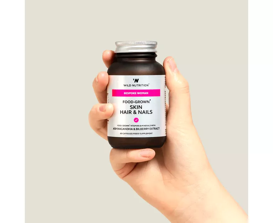 Wild NutritionWomen's Food-Grown® Skin Hair & Nails formula contains herbs and antioxidants to support that inner glow as well as a bespoke blend of Food-Grown® nutrients, whole-foods and herbal extracts. These key ingredients include Zinc and Biotin that contribute to the maintenance of normal skin; Vitamin C to support normal collagen formation; Vitamin E, Copper and Manganese to contribute to the protection of cells from oxidative damage; Selenium and Iodine which contribute to the maintenance of normal hair and nails as well as Copper shown to contribute to normal hair and skin pigmentation.