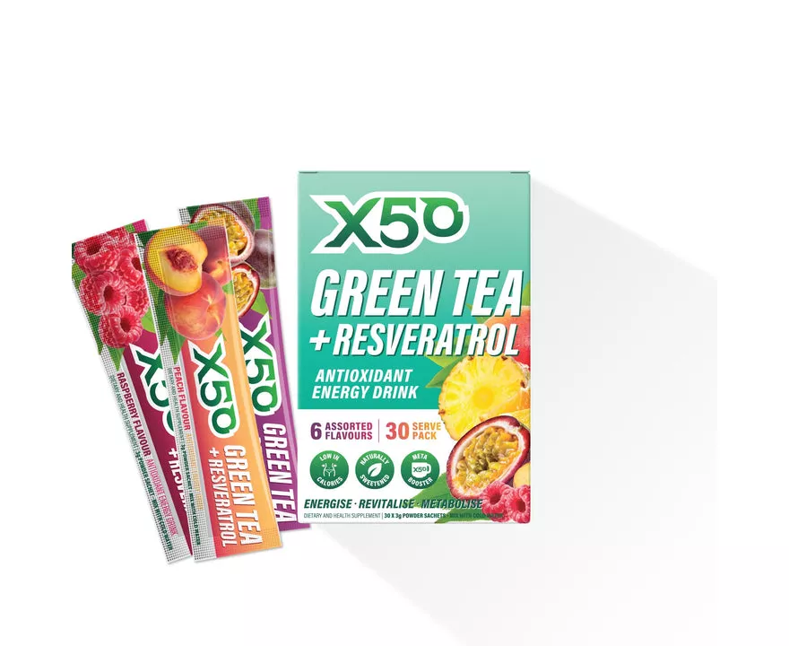 • why are people all over the world adding a sachet of green tea x50 to chilled water? Because they want to squeeze every last drop out of their day and feel good while doing it. Green tea x50 is your go-to for a boost of clean energy, extra antioxidants (because you can never have too many! ), and a healthy dose of green tea that works to boost your metabolism.