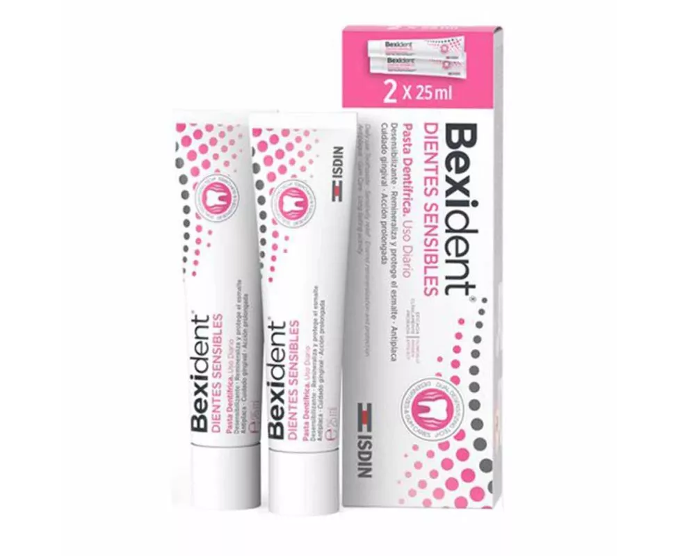 Isdin Bexident Sensitive Teeth Toothpaste is a daily toothpaste that helps reduce gum and teeth sensitivity while remineralizing and protecting the enamel. Whether due to gingival retraction, periodontal treatments, or worn enamel, this toothpaste is able to decrease sensitivity due to its unique Dual Sensitizing Technology. With Potassium Nitrate, which has desensitizing properties, and Triclosan, which has antiseptic properties, this toothpaste helps reduce gum and teeth sensitivity and also protects against plaque formation. And, with a Bioadhesive Excipient, that forms a protective shield and provides a long-lasting effect, and Fluoride, it also helps remineralize and protect the enamel. All in all, this alcohol and gluten-free toothpaste is ideal to help reduce tooth sensitivity. It is suitable for daily use, it not only helps reduce gum and teeth sensitivity but also remineralizes and protects the enamel keeping gums, teeth, and mouth healthy.