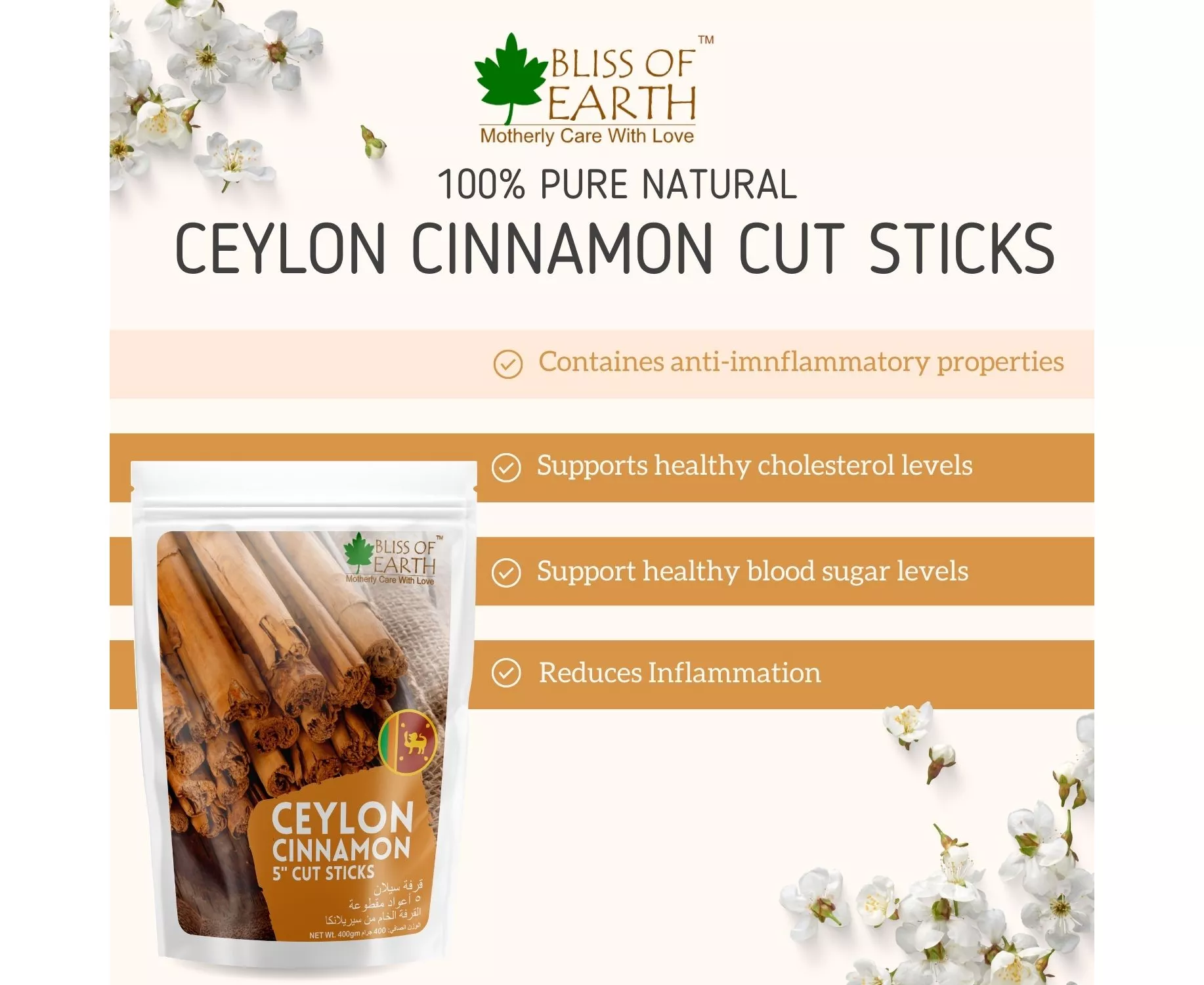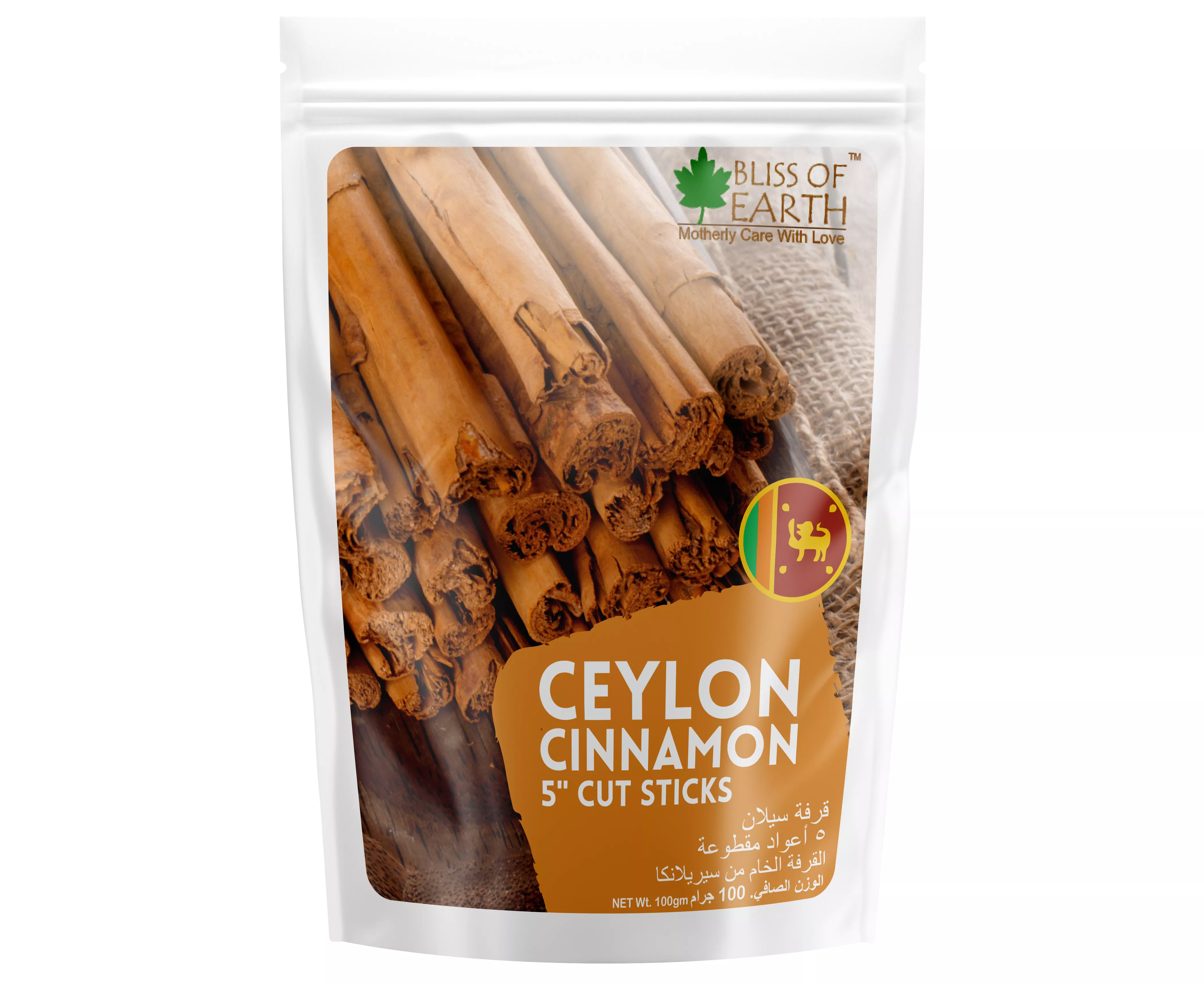 Bliss of Earth 100gm Ceylon Cinnamon (Dalchini) 5" Cut Sticks True Cinnamon Whole Raw From Sri Lanka Original Great for Cinnamon Tea Cinnamon Bread Cinnamon Roll