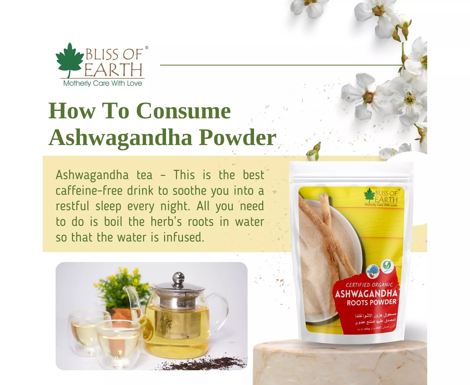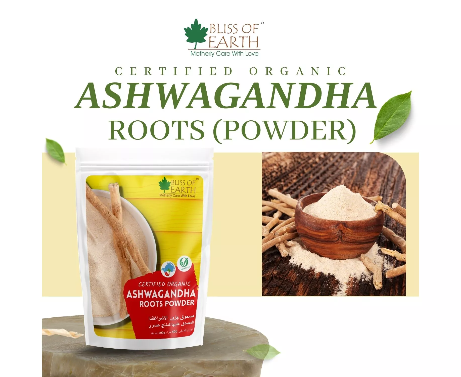 Bliss of Earth Ashwagandha Root Powder Organics Certified Withania Somnifera Helps To Promotes Better Strength and Stamina 400g