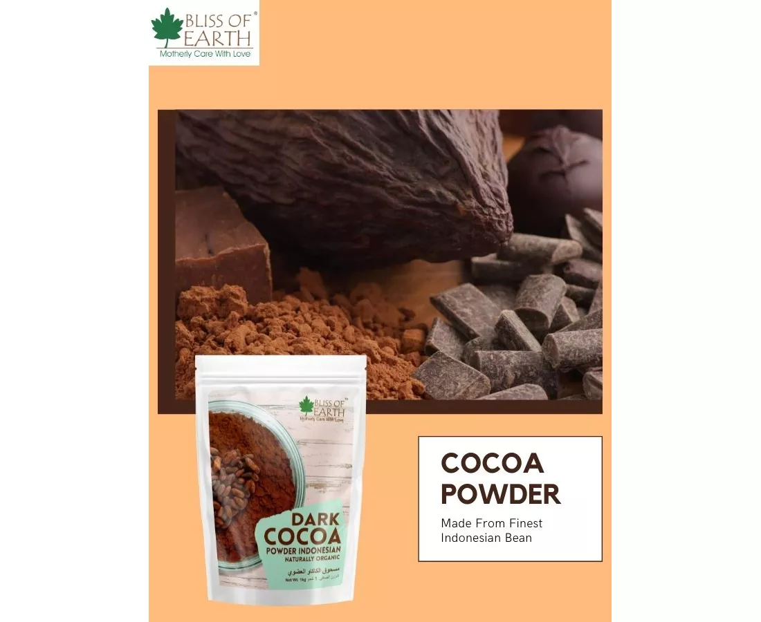 Bliss of Earth Naturally Organic Dark Cocoa Powder for Baking Chocolate Cake Cookies Chocolate Shake Unsweetened Cocoa 100g